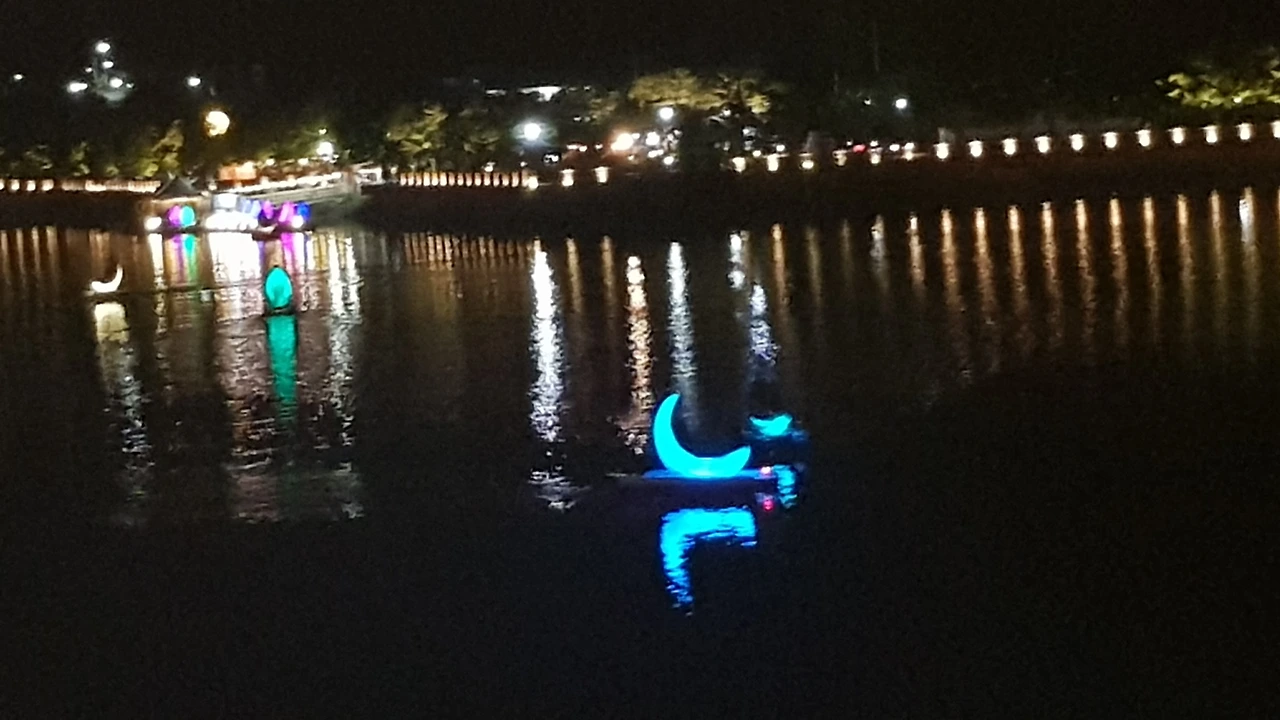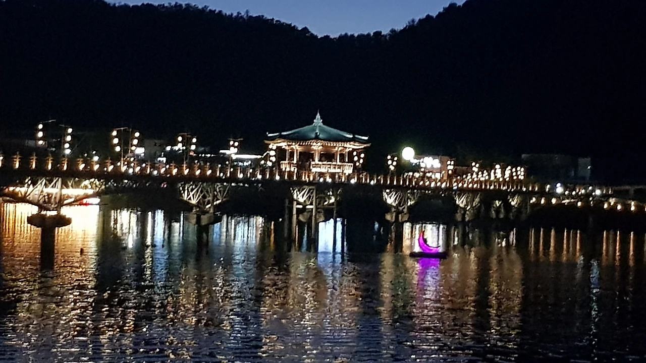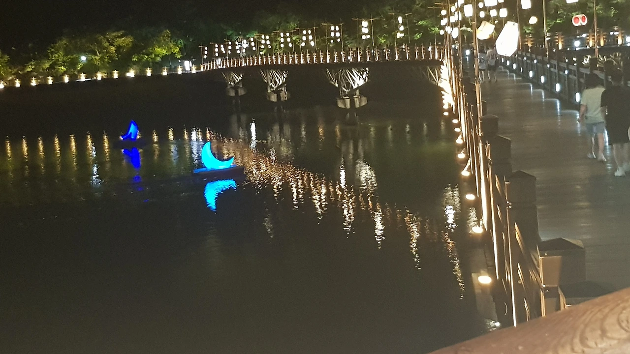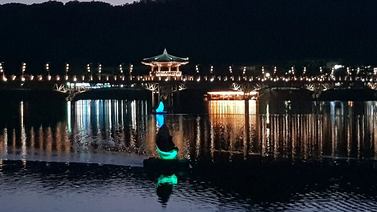 월영교 밑 낙동강에 떠다니는 신비한 쪽배