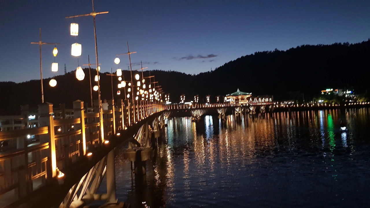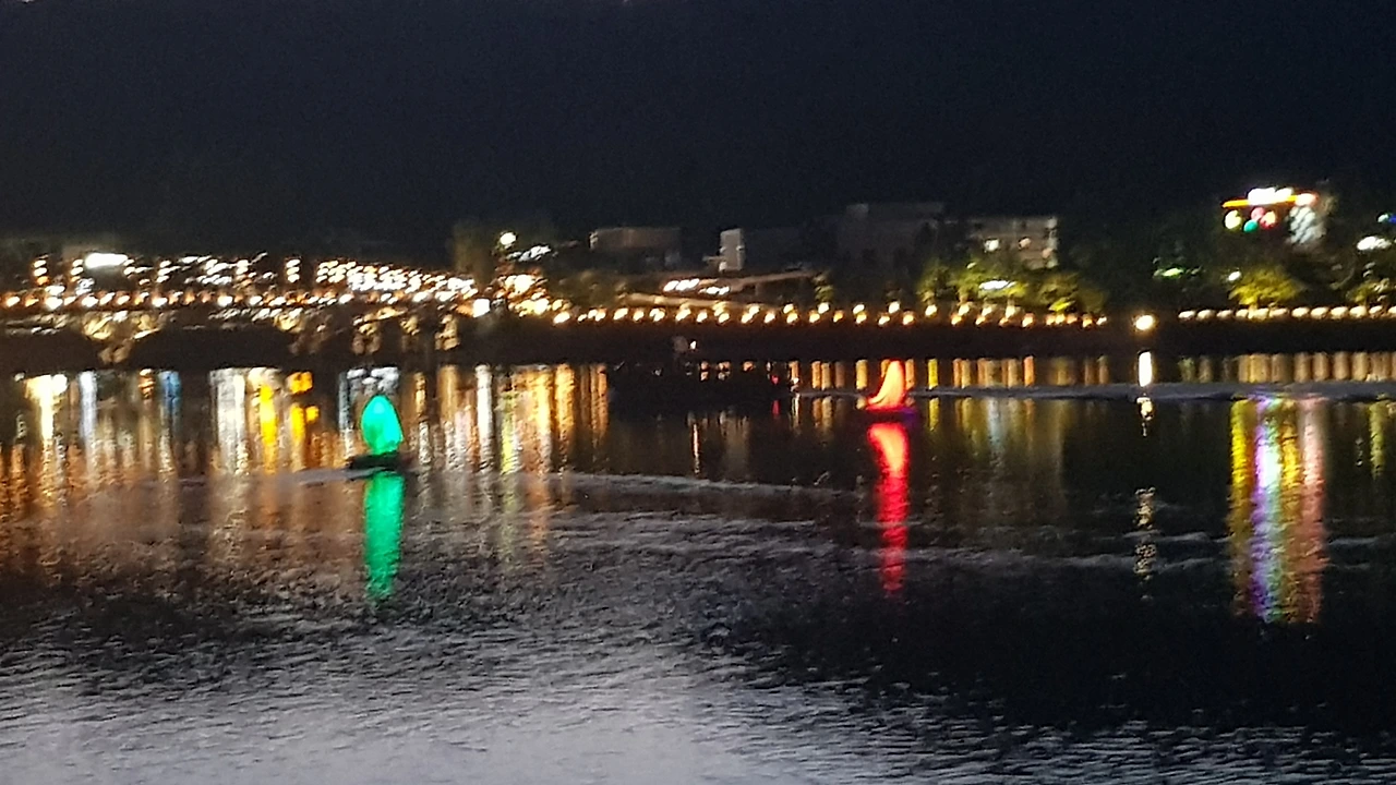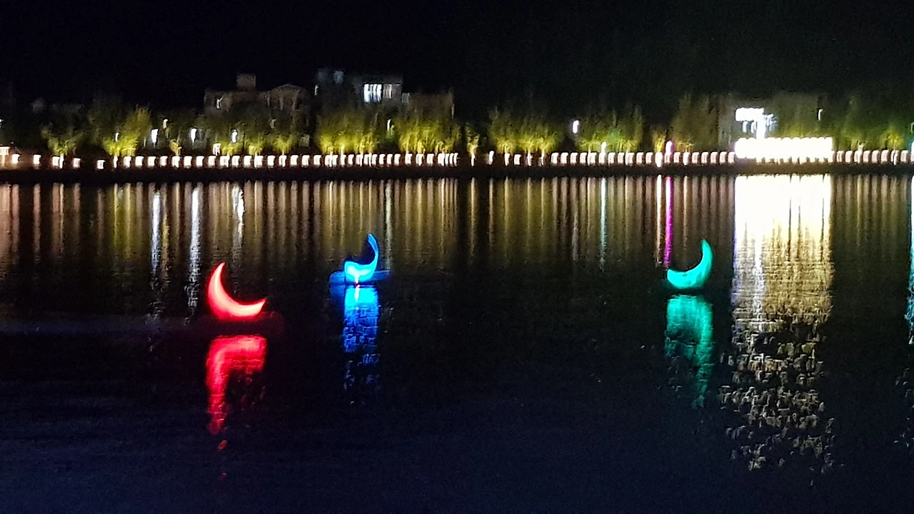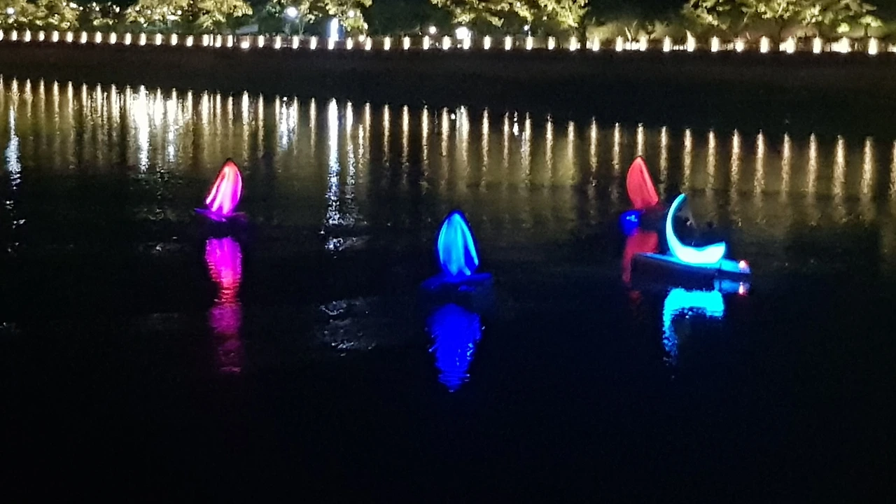 월영교 밑 낙동강에 떠다니는 신비한 쪽배
