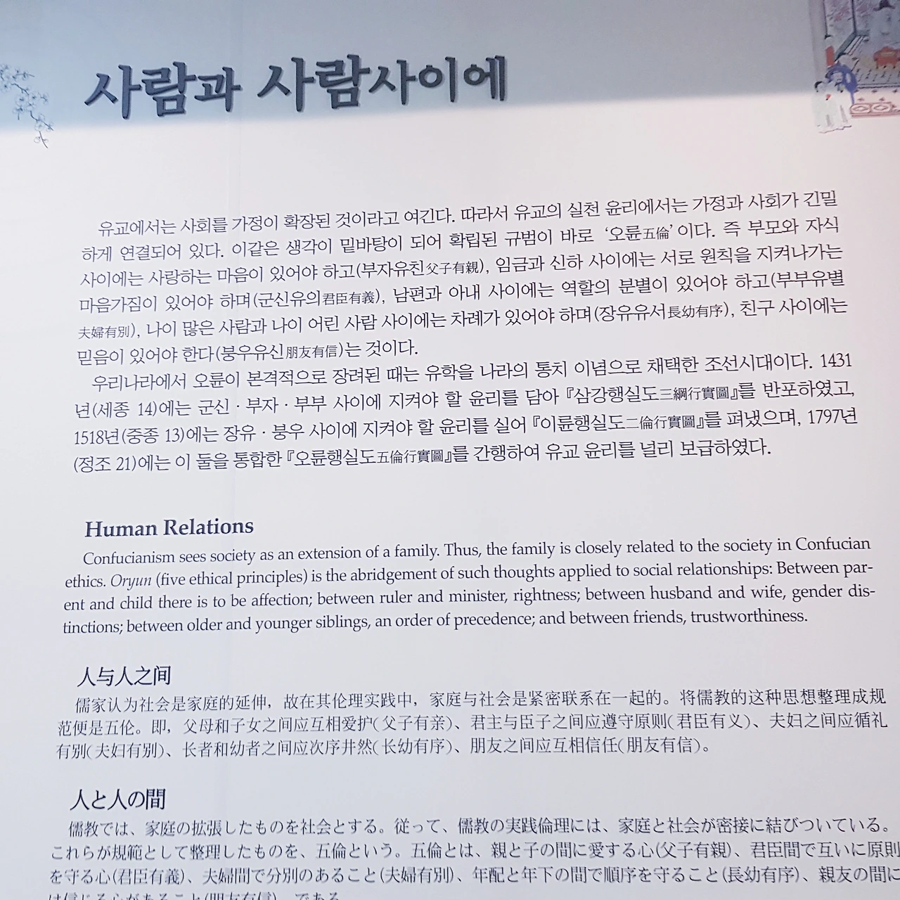 ㅡ사람에 대한 존중과 배려등으로 나누어 전시되고 있었는데 우리가 삶을 살아가는데 꼭 갖추어야 할 인,의,예,지 자세임을 알 수 있었다