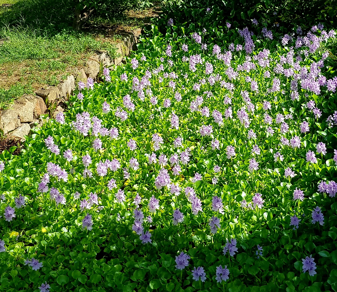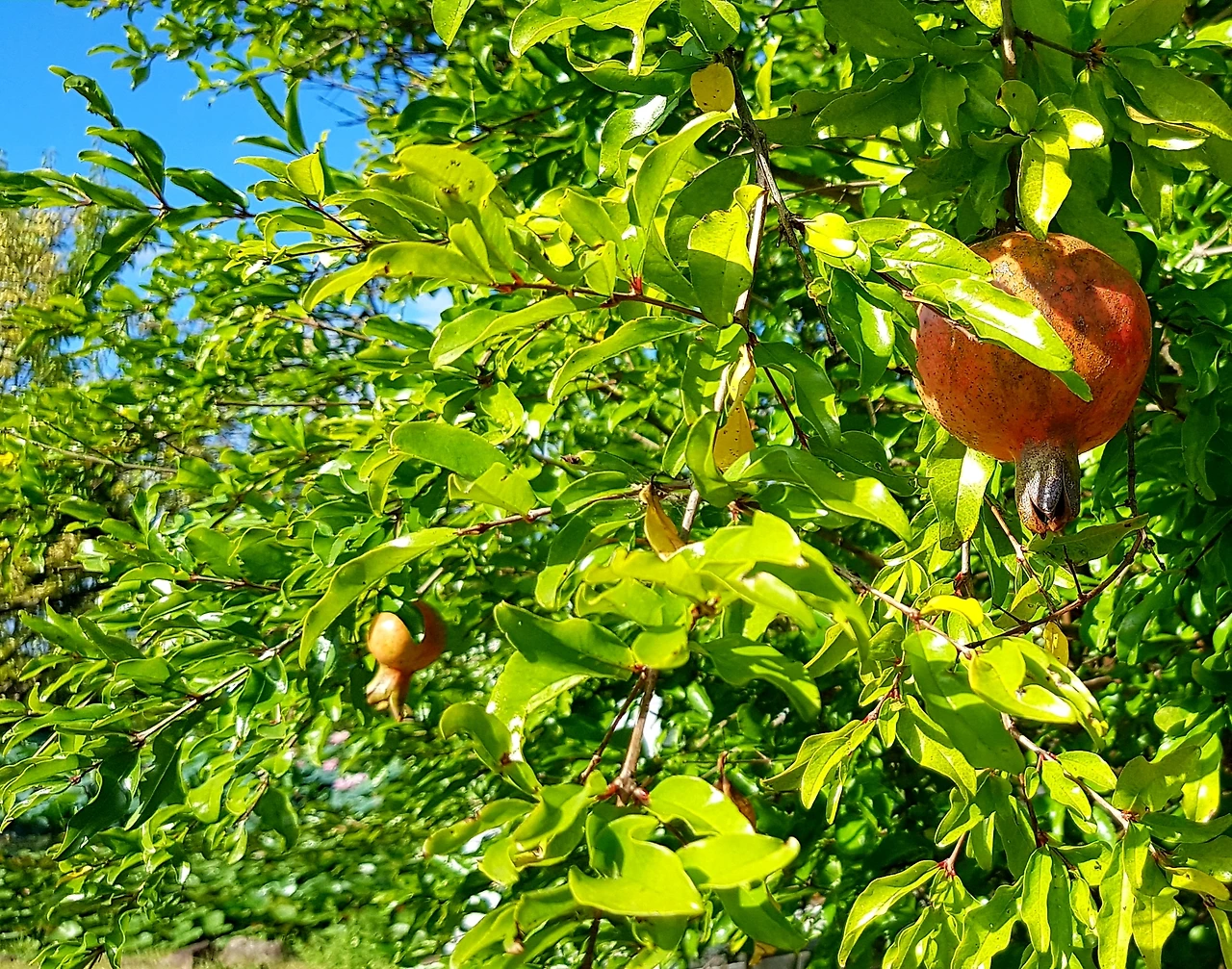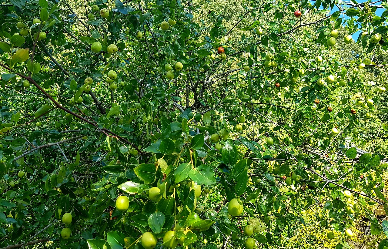 빨간 석류가 익어가고 대추나무의 대추도 가을빛을 따라가고 있었는데 나무가 아름답게 어우러진 길에는 허리를 숙이고 지나야 했으며 다리를 건너 잔잔한 보랏빛 꽃들이 반기는 길옆으로 작은 연못이었다