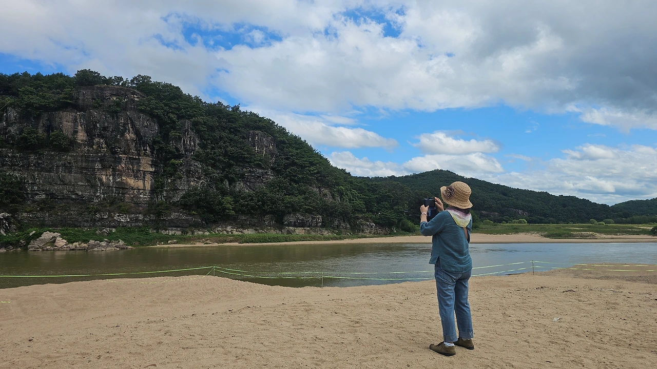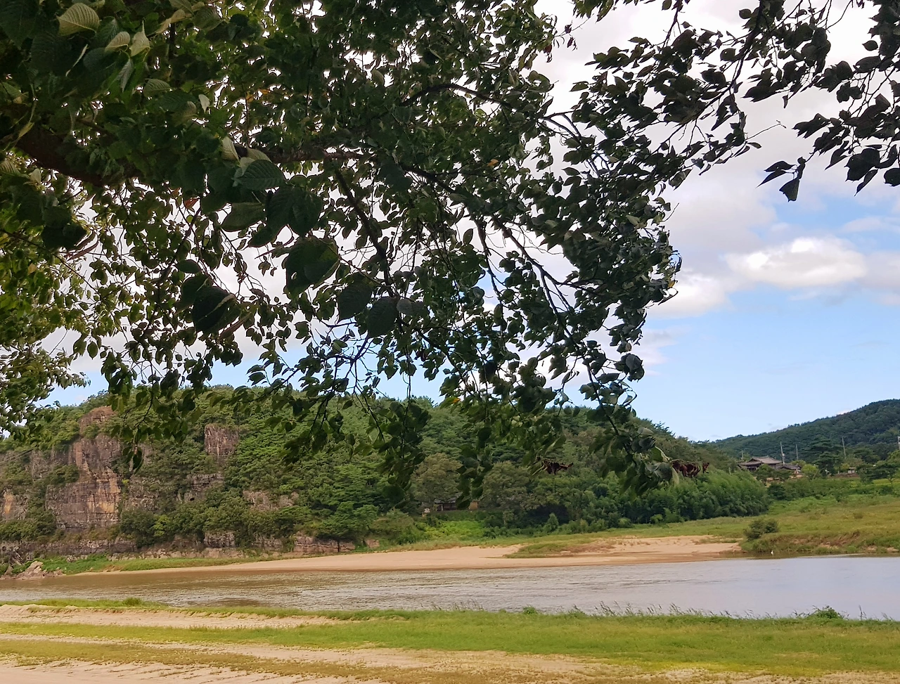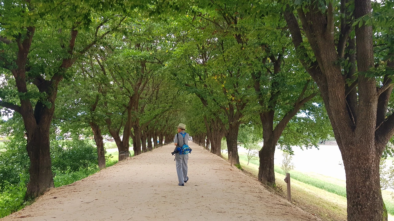 버스를 타고 잠깐 가 내렸는데 마음입구는 공사 중이라고 입장금지 줄이 걸려있고 지키는 이도 있어 강둑길로 향했다