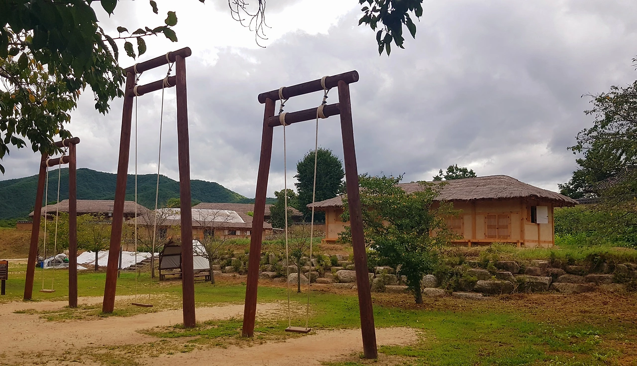 길가에 그네가 있어 잠시 추억놀이를 해보고