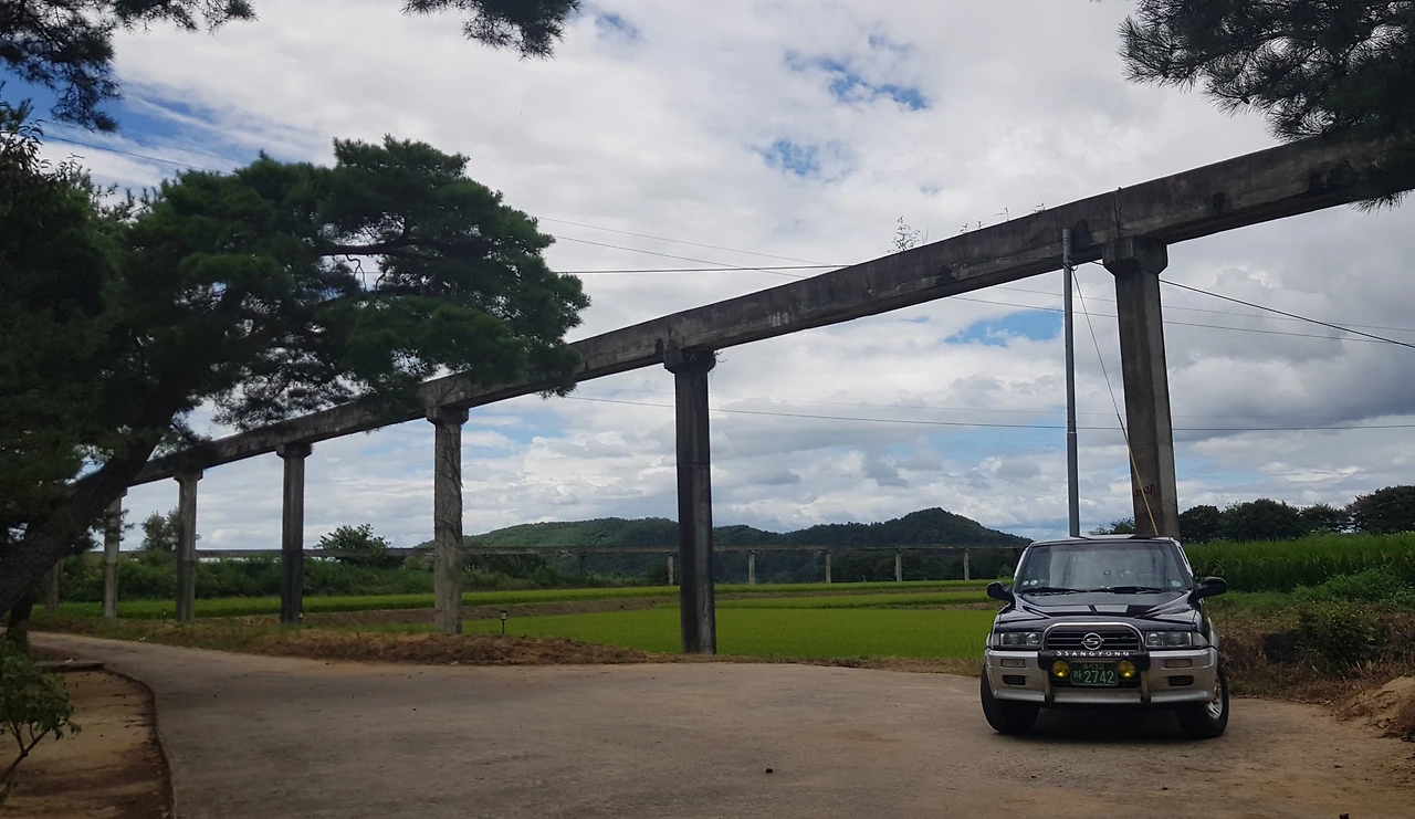 차로 한참을 달려 찾아간 곳에는 넓은 논에 하늘길을 달리는 농수로가 인상적이었다
