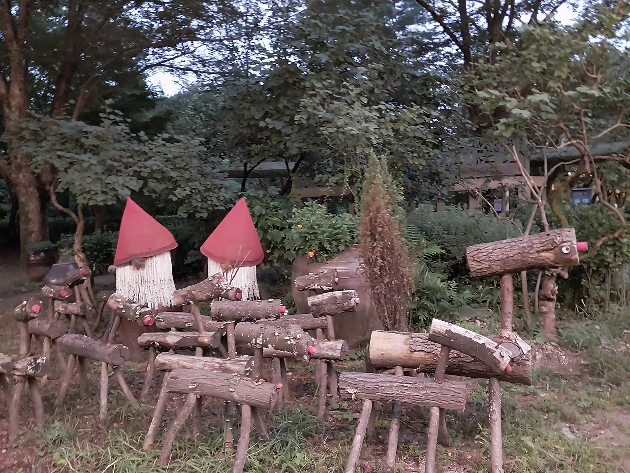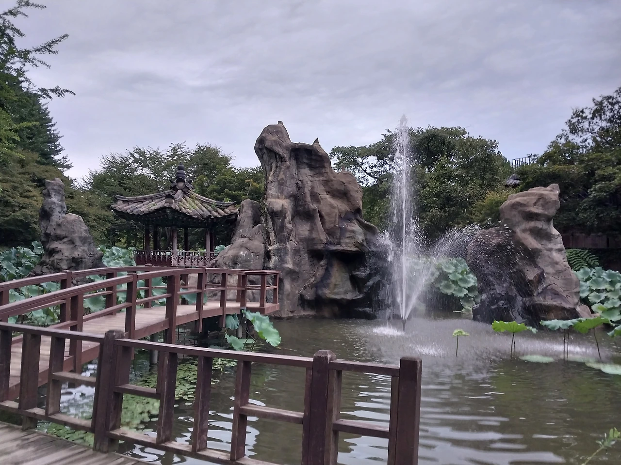 아름다운 꽃들이 핀 넓은 정원에는 예쁘고 멋진 조각작품이 사이사이 있었고 이파리가 아주 큰 열대 식물도 많았었다