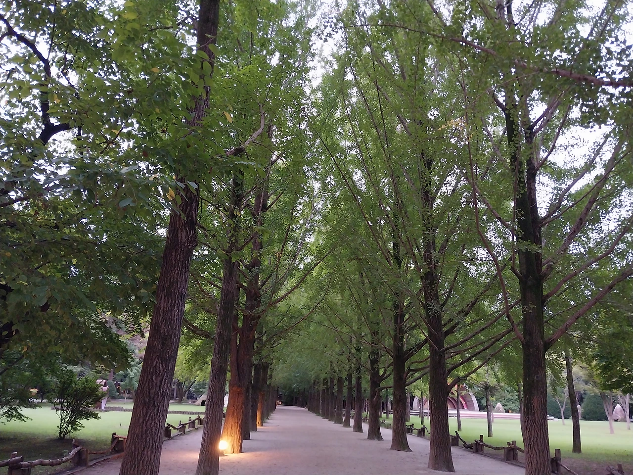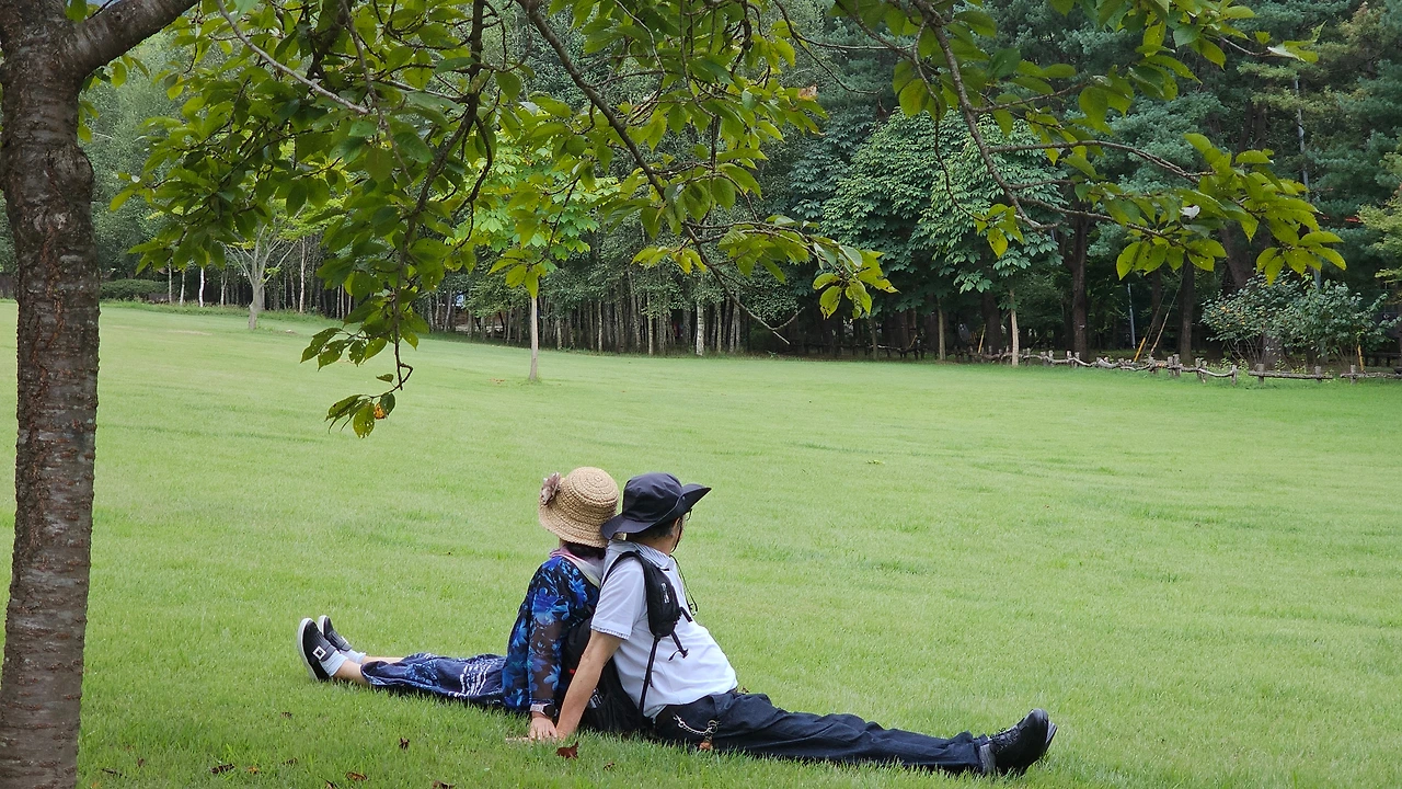 아주 커다란 메타스콰이어 길을 지나고 타조가 놀자는데도 시간이 없다며 지나고 우리의 추억이 담긴 푸른 잔디밭에 도착했다