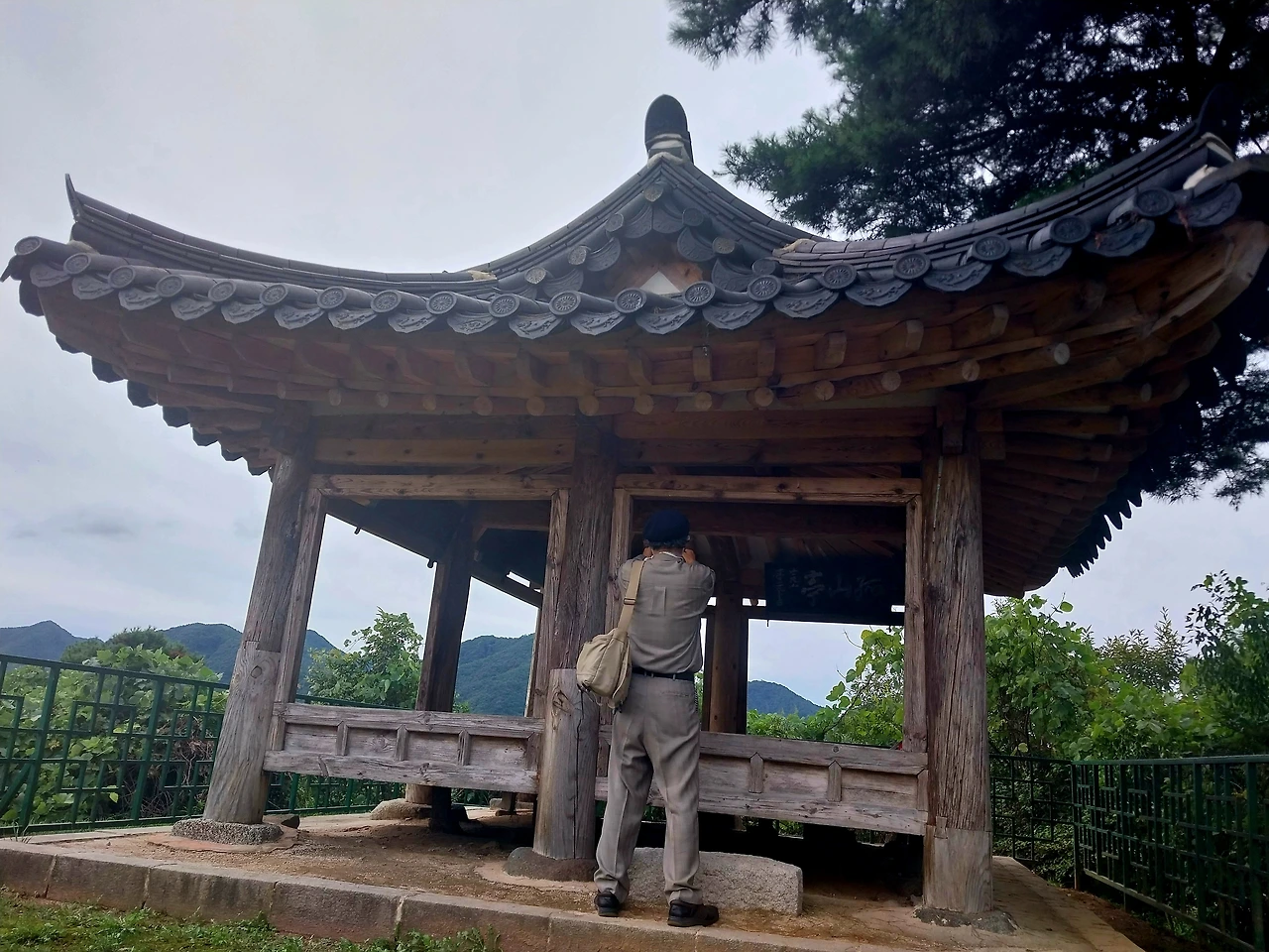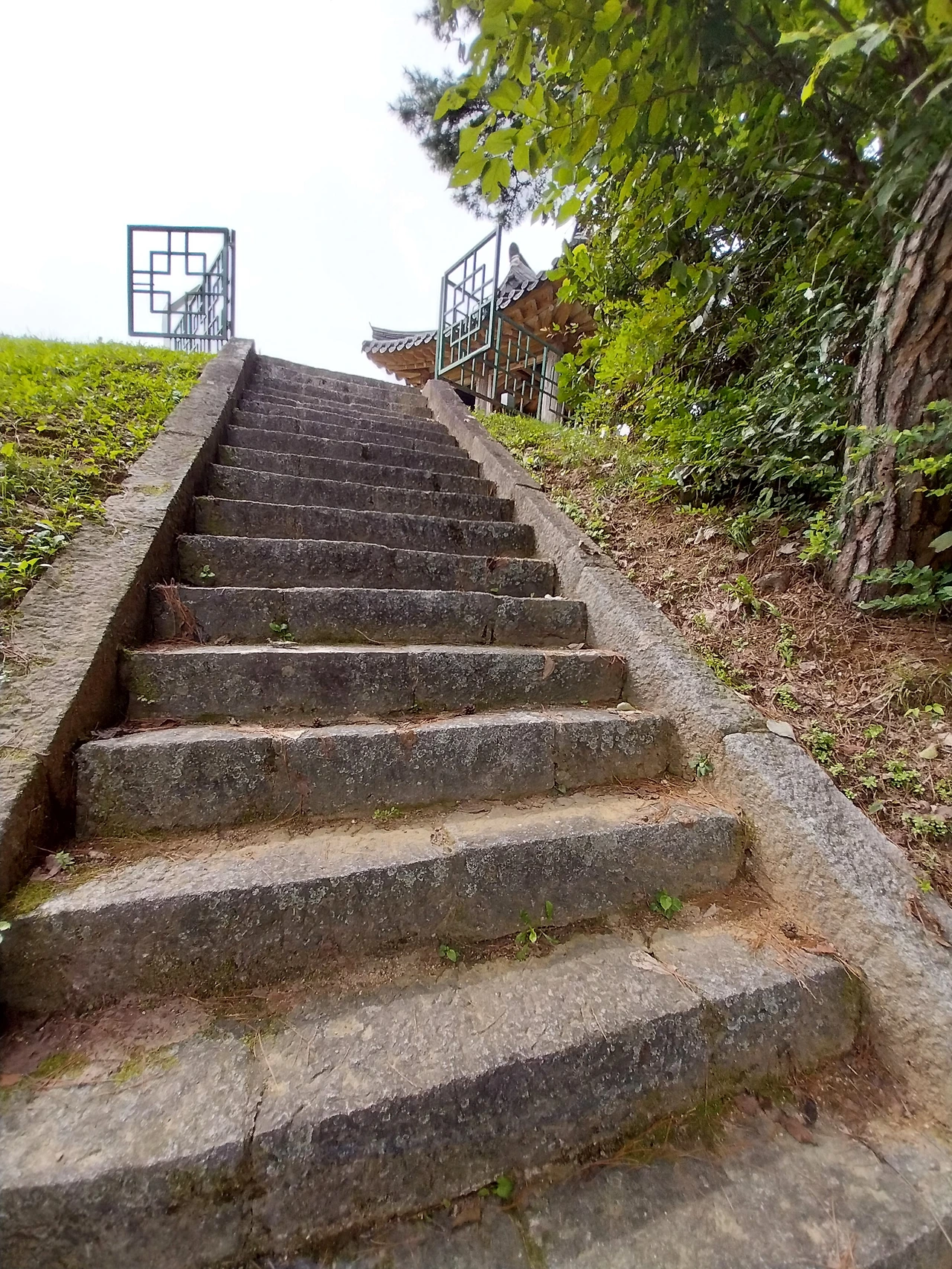 사과과수원 옆길을 오르고 또 계단을 올라 마주한 정자는 역시 그 위치가 멋스러운 풍광을 안고 있으며 아름드리 소나무들이 그들의 역사를 지켜보고 있었다는 듯 고고한 모습이다