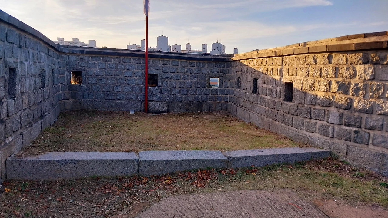 서치1ㅡ성벽을 돌출시켜 쌓은 치성이다. 성벽 가까이 접근하는 적을 감시하고공격하는 역할을 하는시설