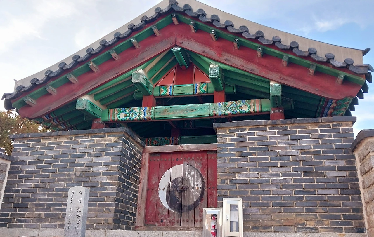 서북각루ㅡ사적 제3호로 서북쪽의 감시용시설 아래층에는 온돌을 놓아 병사들이 머물게하고 위쪽은 마루를 만들고 사라졌지만 널판지에 구멍을 내 사면을 막고 적을 감시했다