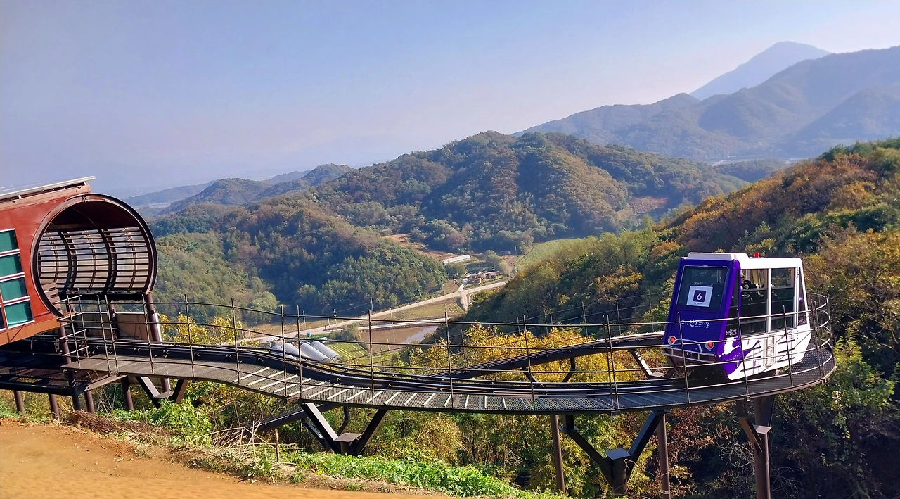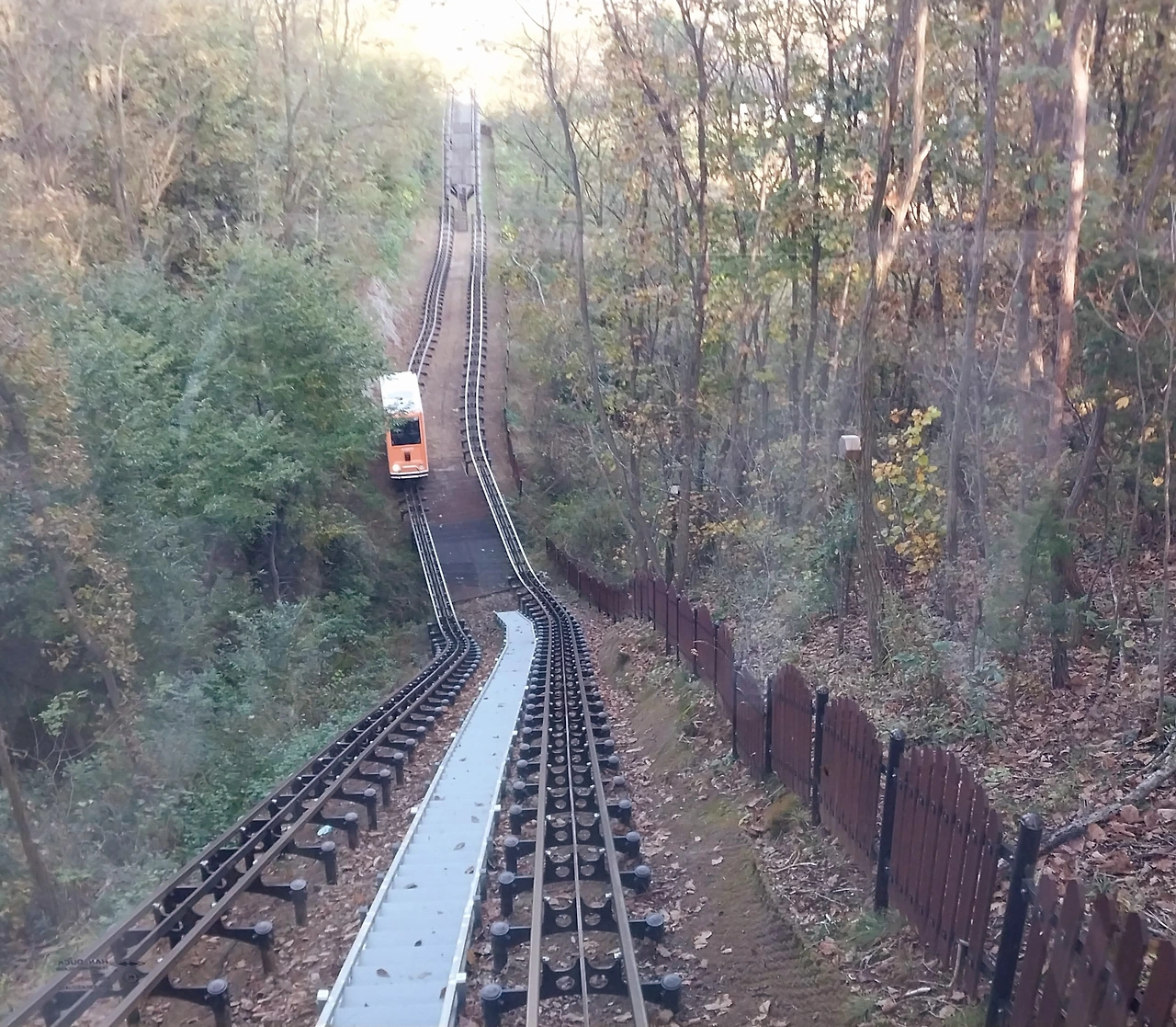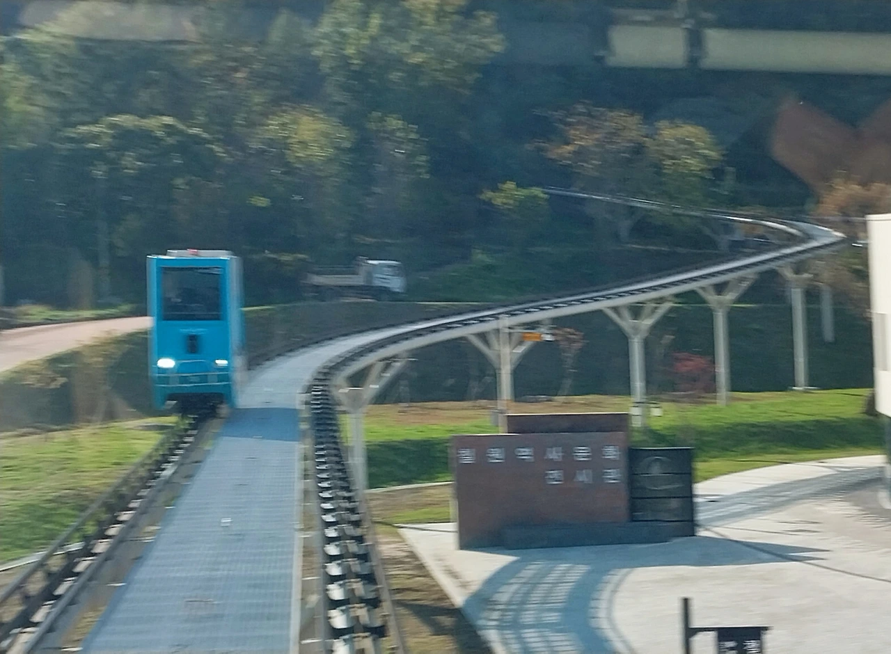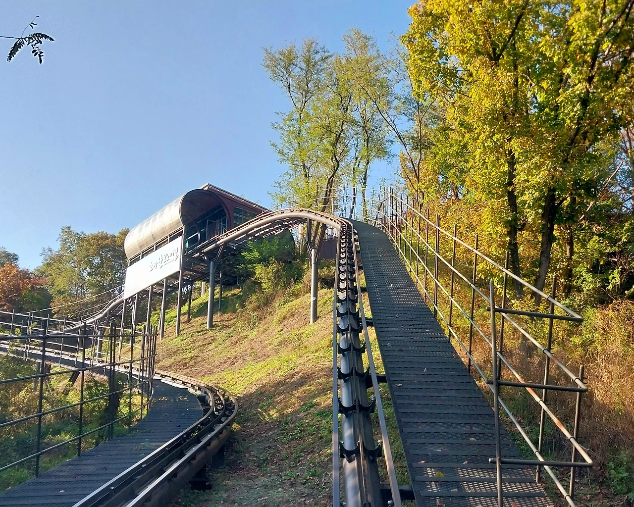어느 곳은 거의 위를 향해 곧게 솟아오른 구간을 오르내리는데 철로 하나에 의지하고 움직이는 사실에 놀라웠다