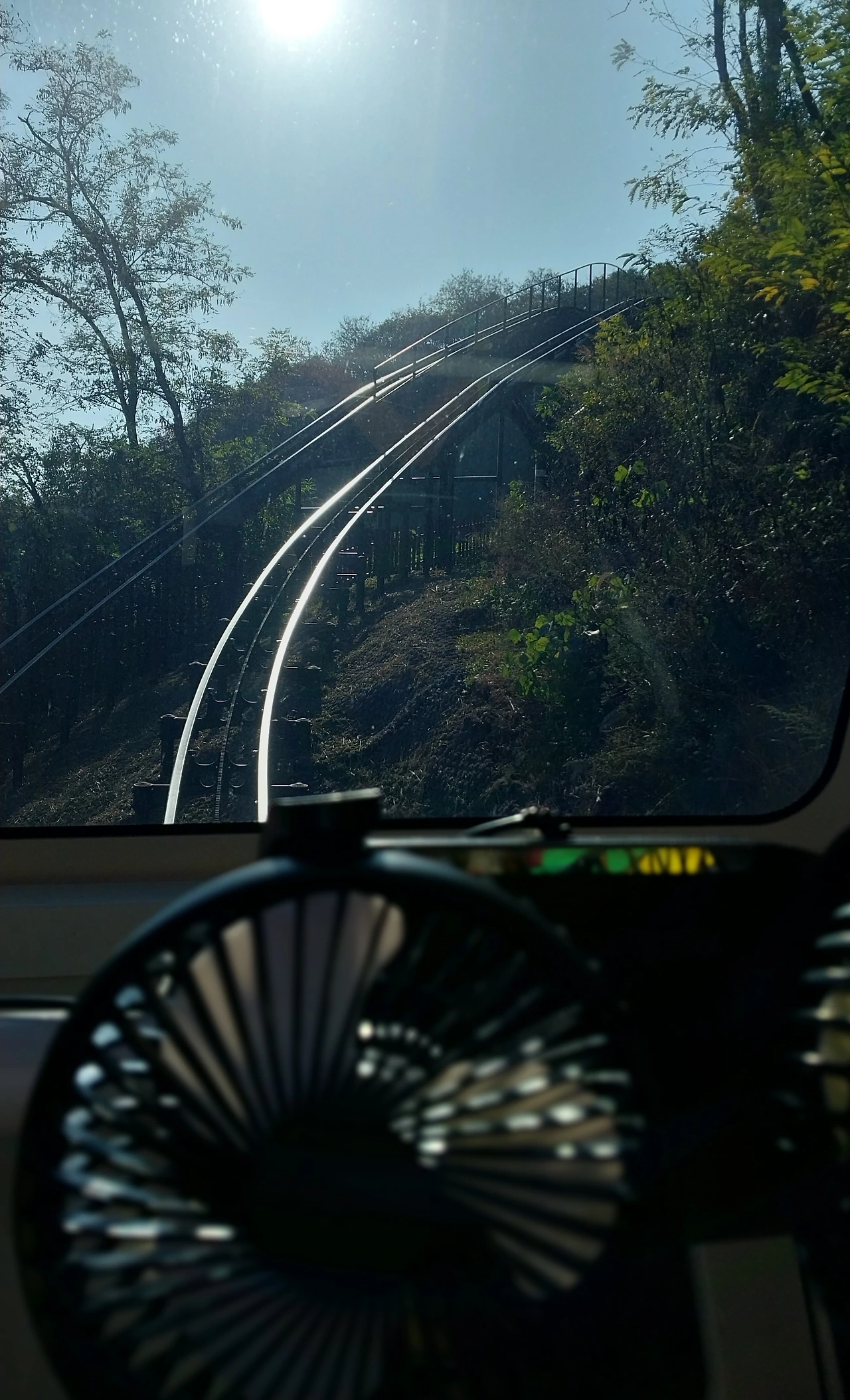 차례대로 8명씩 모노레일을 탔는데 우리는 네 번째 조로 모노레일을 타고 오르다 레일의 가파름에 깜짝 놀랐다