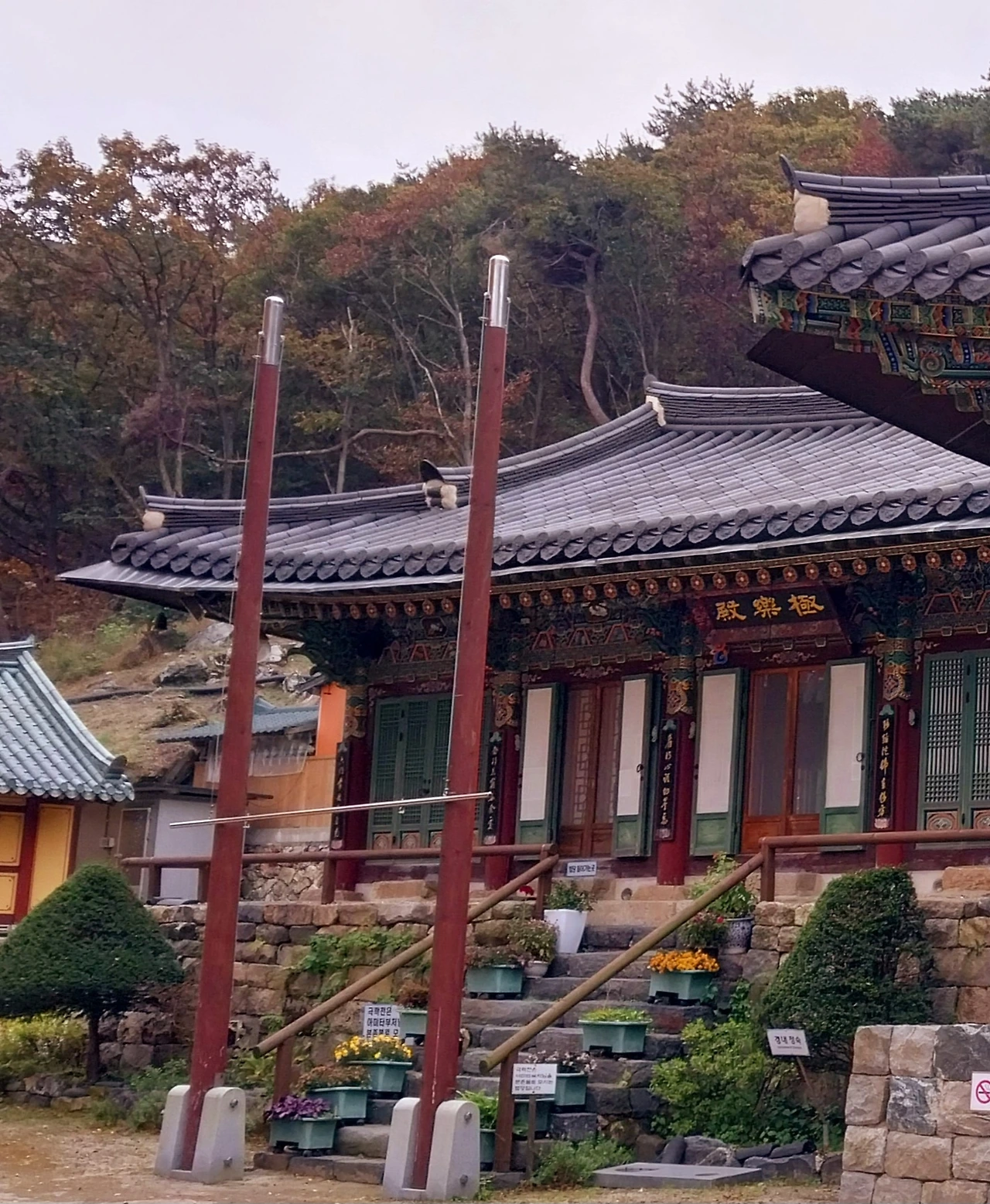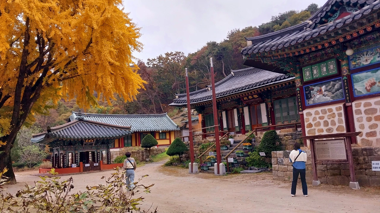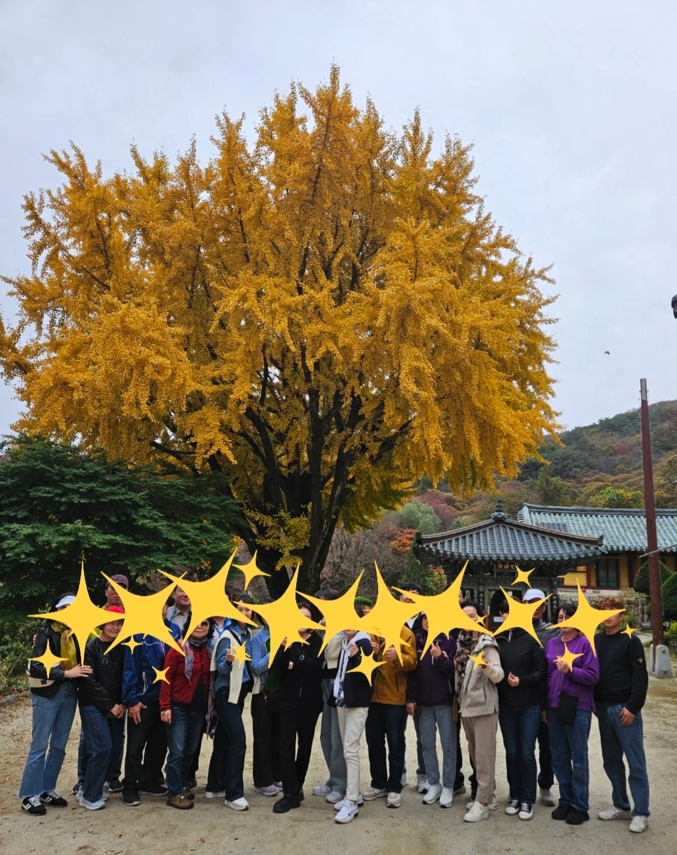 너무 멋져서 은행나무를 돌아보고 단체 사진도 찍은 후 조용히 극락전으로 향했다