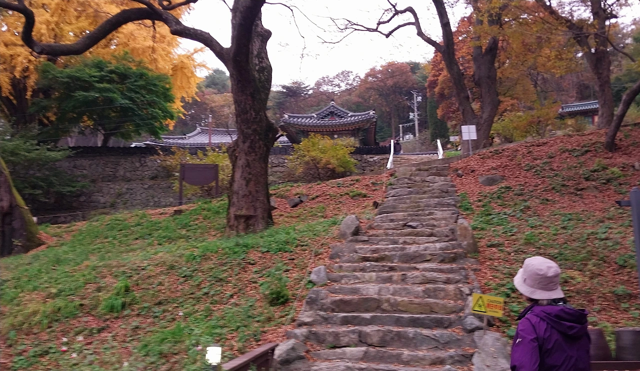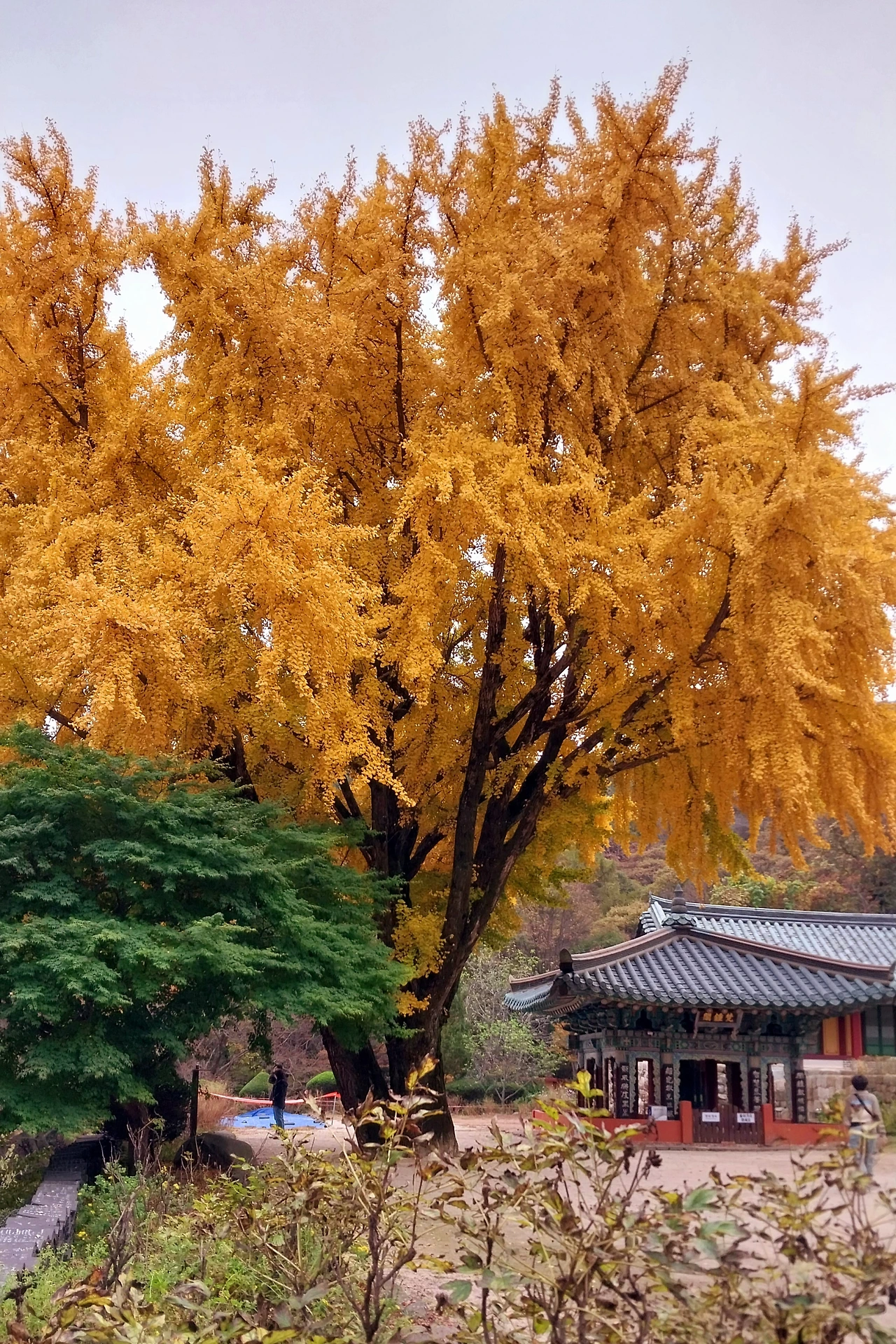 돌계단을 오르니 우와!ㅡ노랗게 가을 잎은 거대한 은행나무가 어서 오라 한다