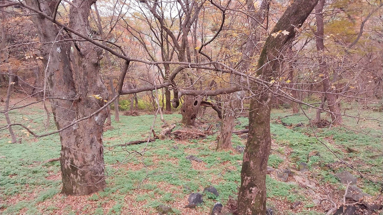 중턱의 숲에는 굵은 둘레의 나무들이 스스로 정화를 하며 자연을 유지하고 있는 세월입은 나무 숲을 마주하며 도착한 백련사 앞에는 쉽게 출입을 허락지 않는다며 돌계단을 오르라고 한다