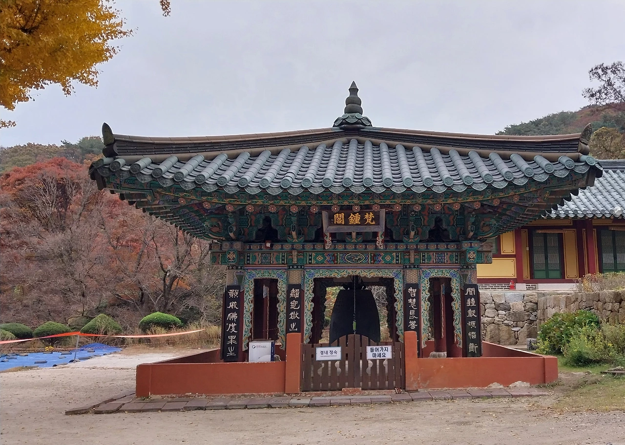 은행나무 옆에 종각이 있는 백련사 규모가 크지는 않았지만 아름다웠다