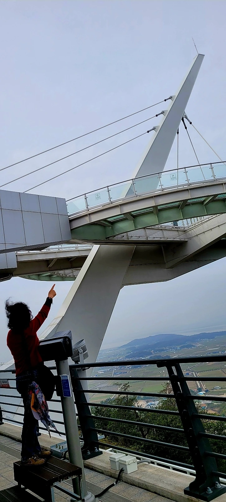 강화도 화개산 스카이워크에 도착 걸음 떼기 힘들다며 엘리베이터로 정상으로 향했다