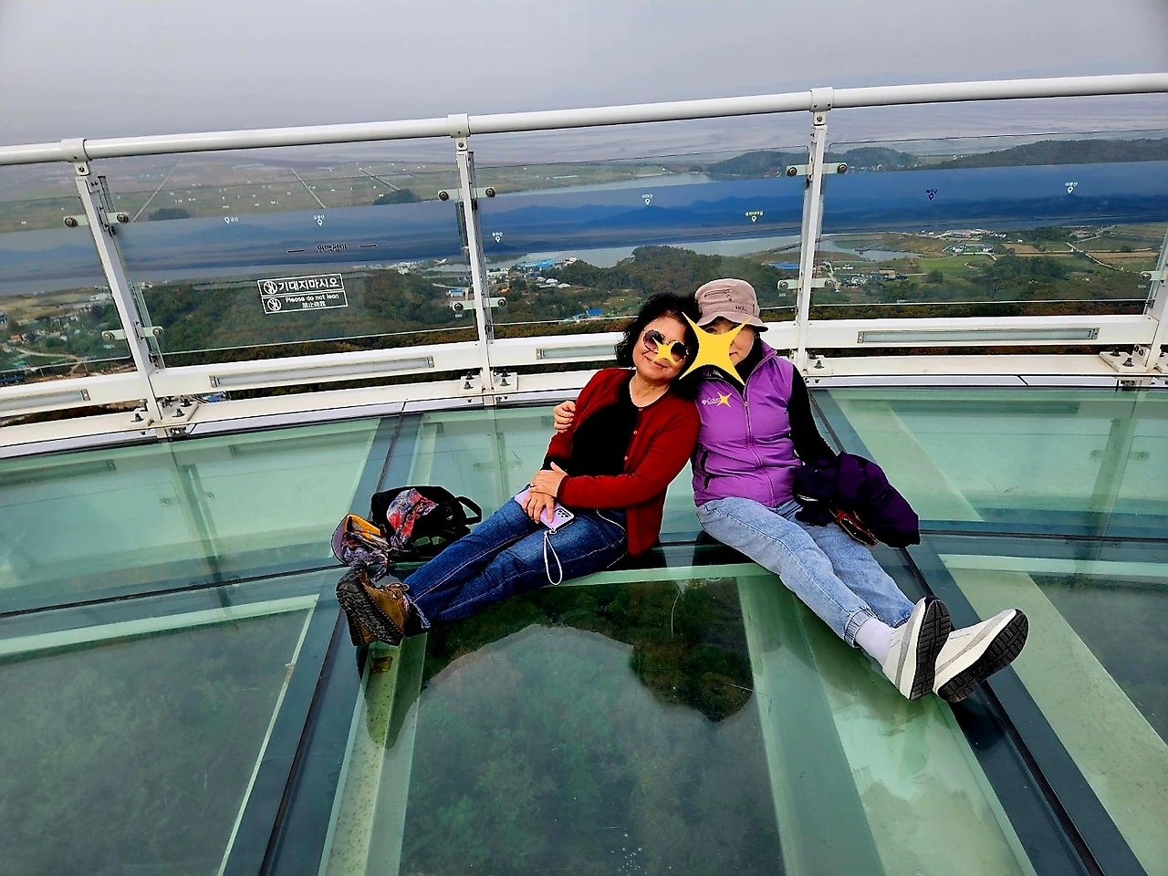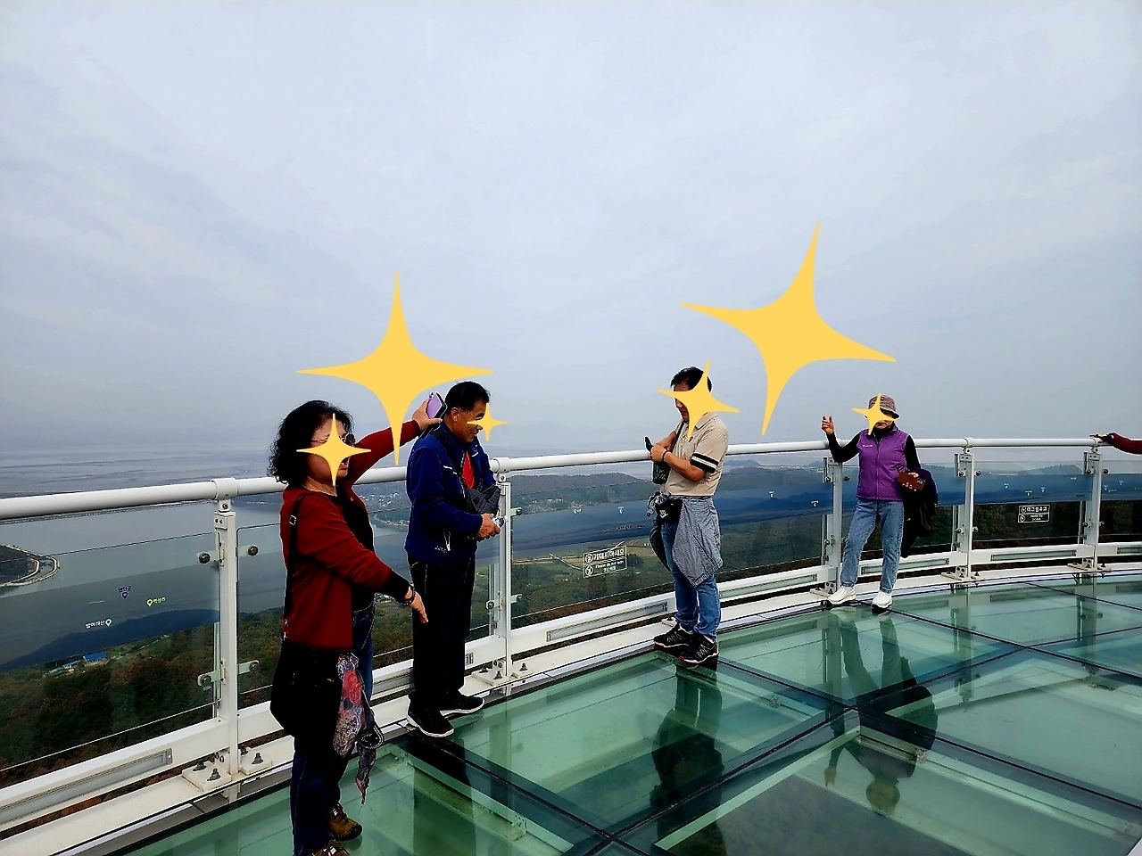 투명 유리 밑도 바라보고 앉아서 사진도 찍고 그곳 관리인께서 이런저런 모습으로 여러 컷을 찍어 주신다