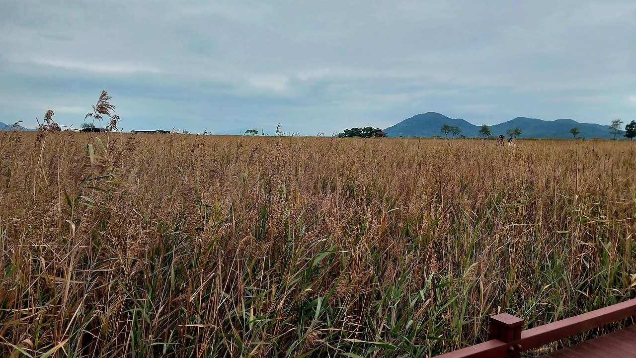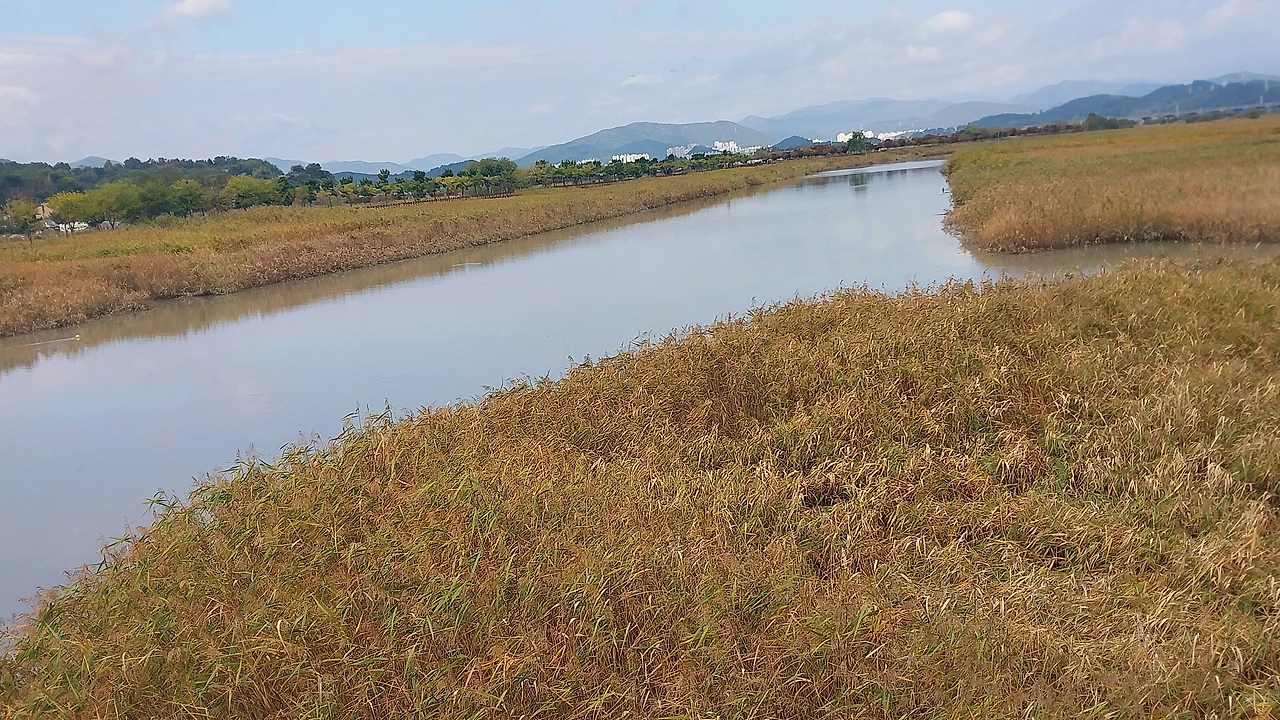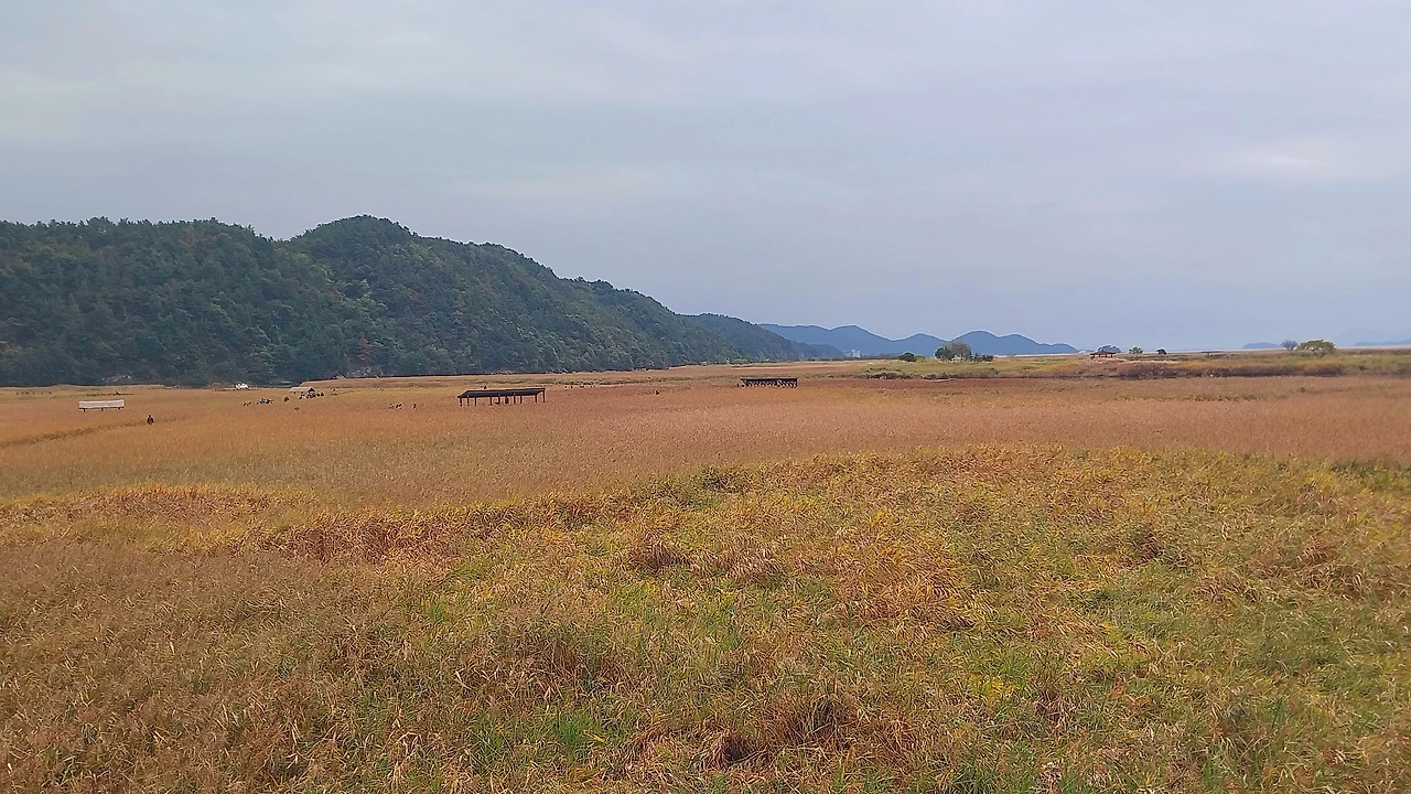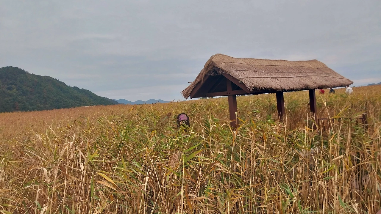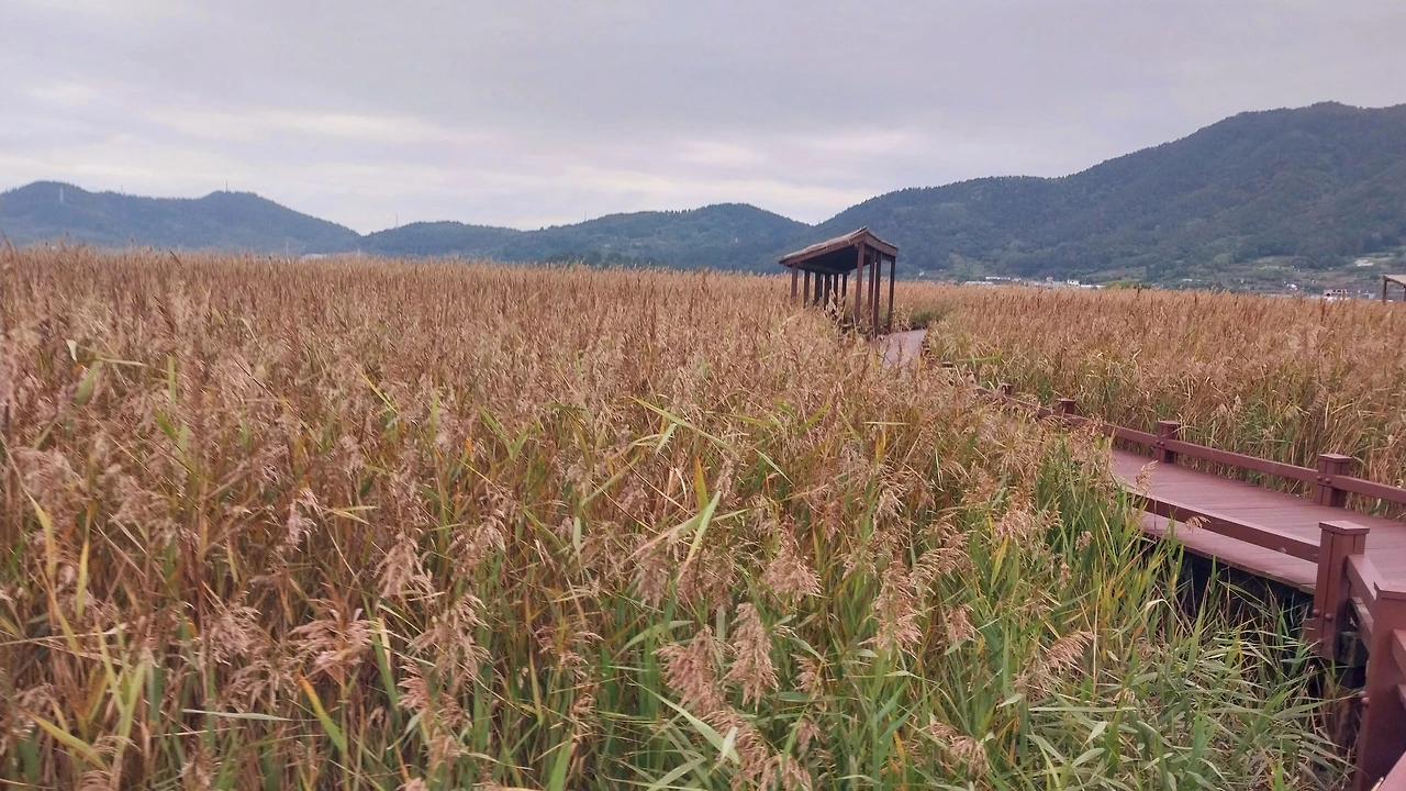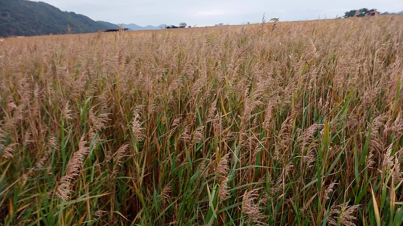 광활한 숲지의 갈대밭은 황금빛 옷을 갈아입고 바람결에 살랑대며