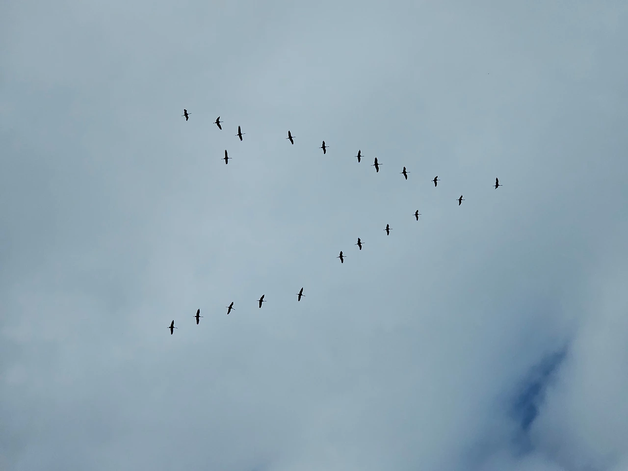 철새 도래지인 습지답게 한 무리의 철새들이 대장의 구령에 맞추어 날고 있었다