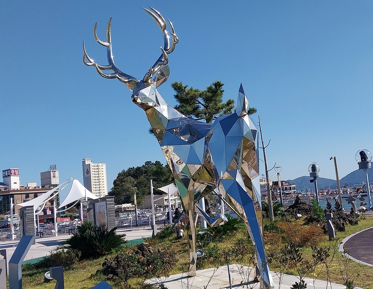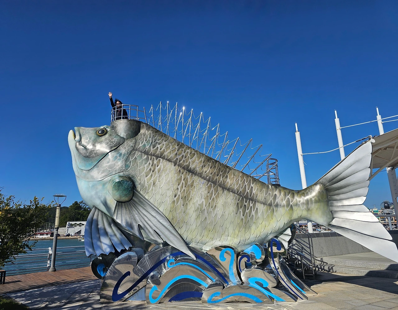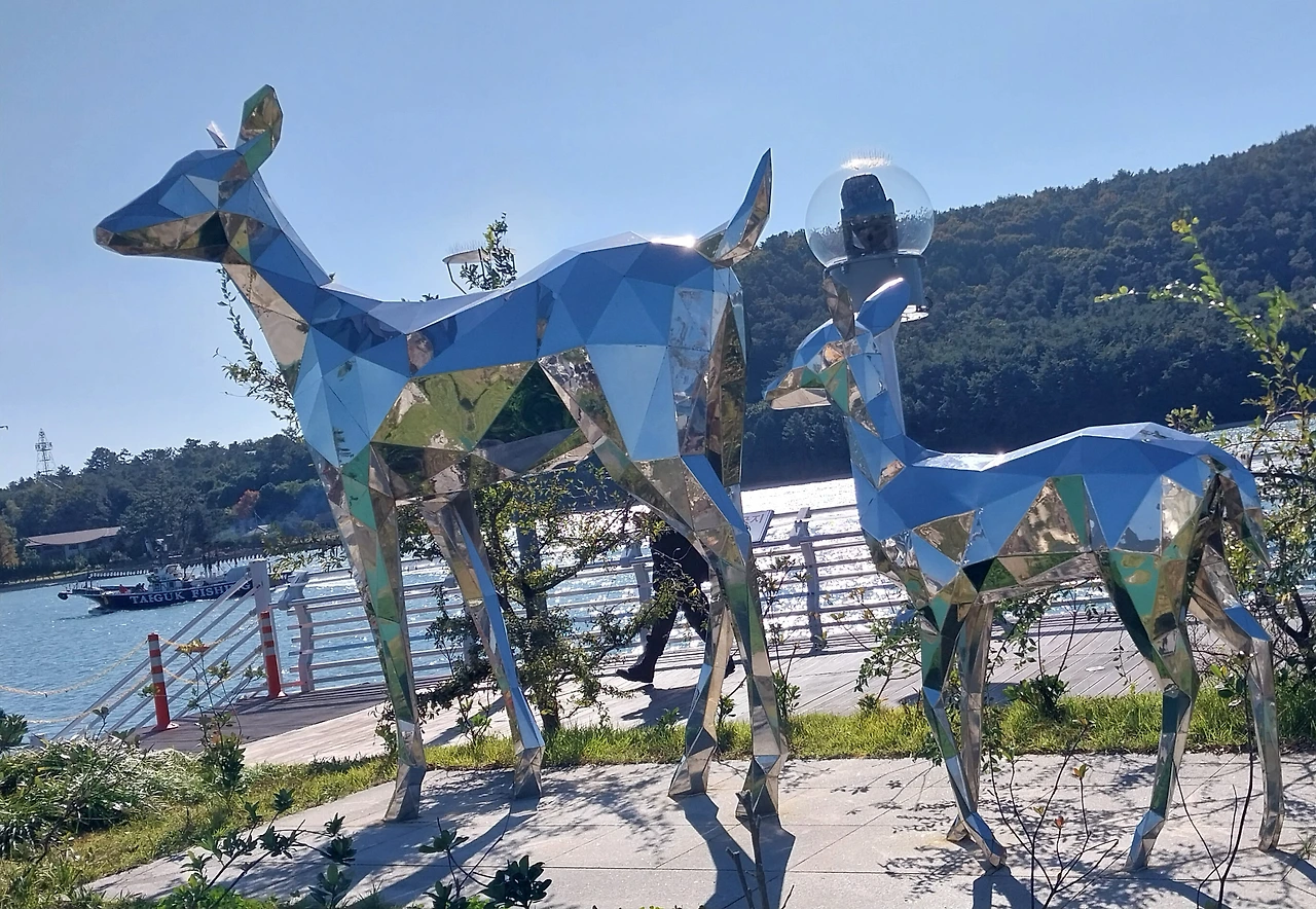 계단을 올라 커다란 붕어 모형 위로 올라서니 꽤 높은 전망대였고 은빛 사슴 가족도 있고