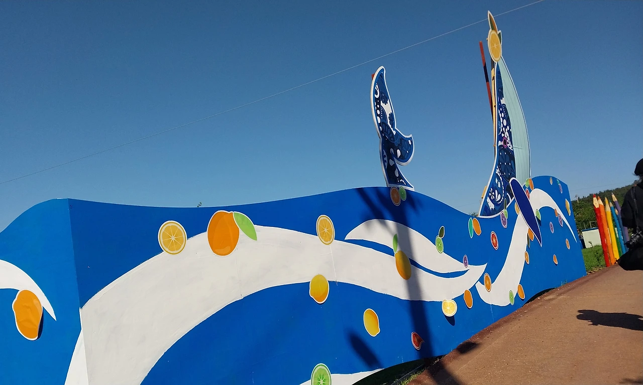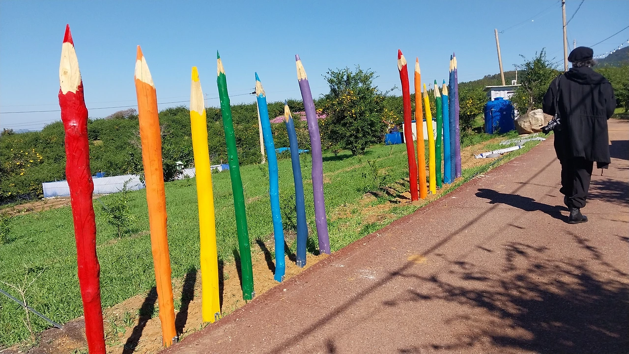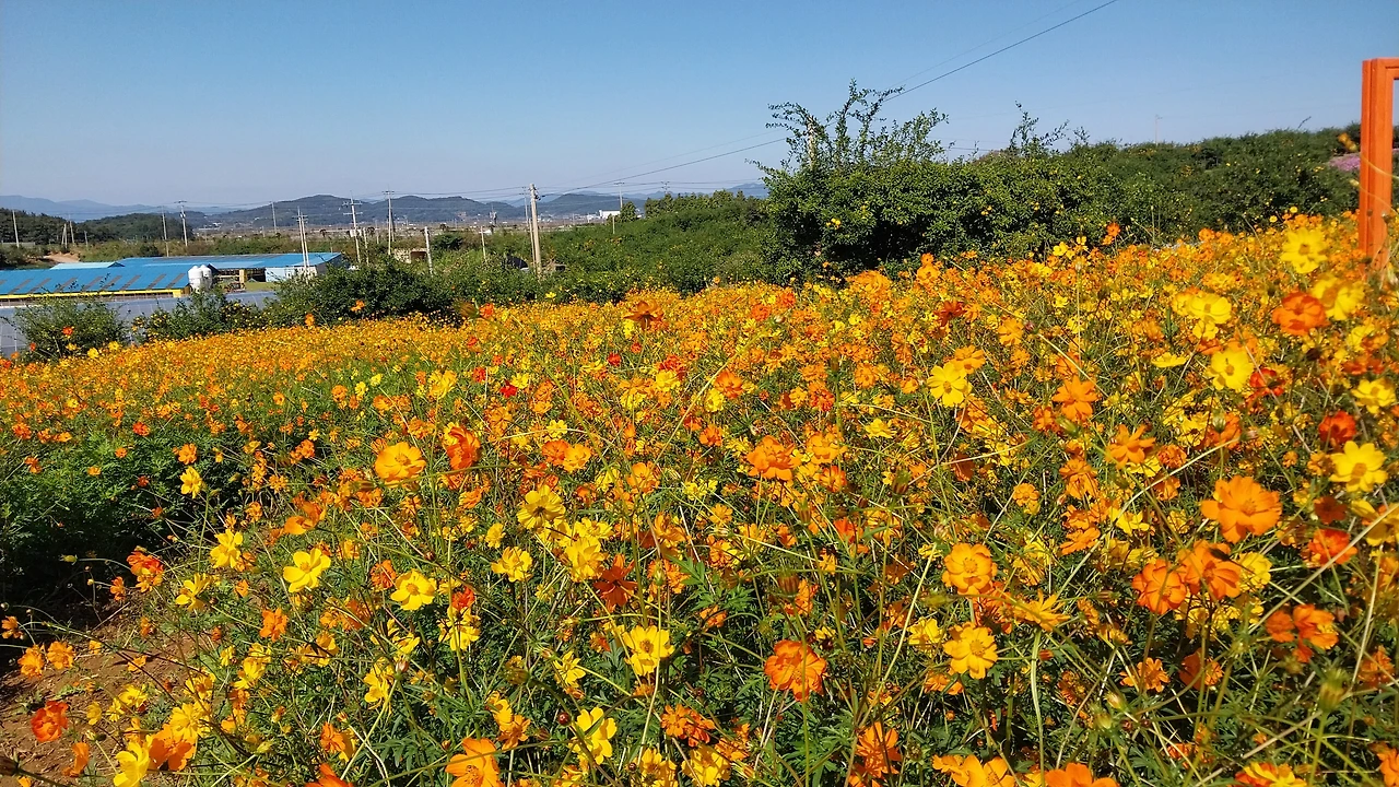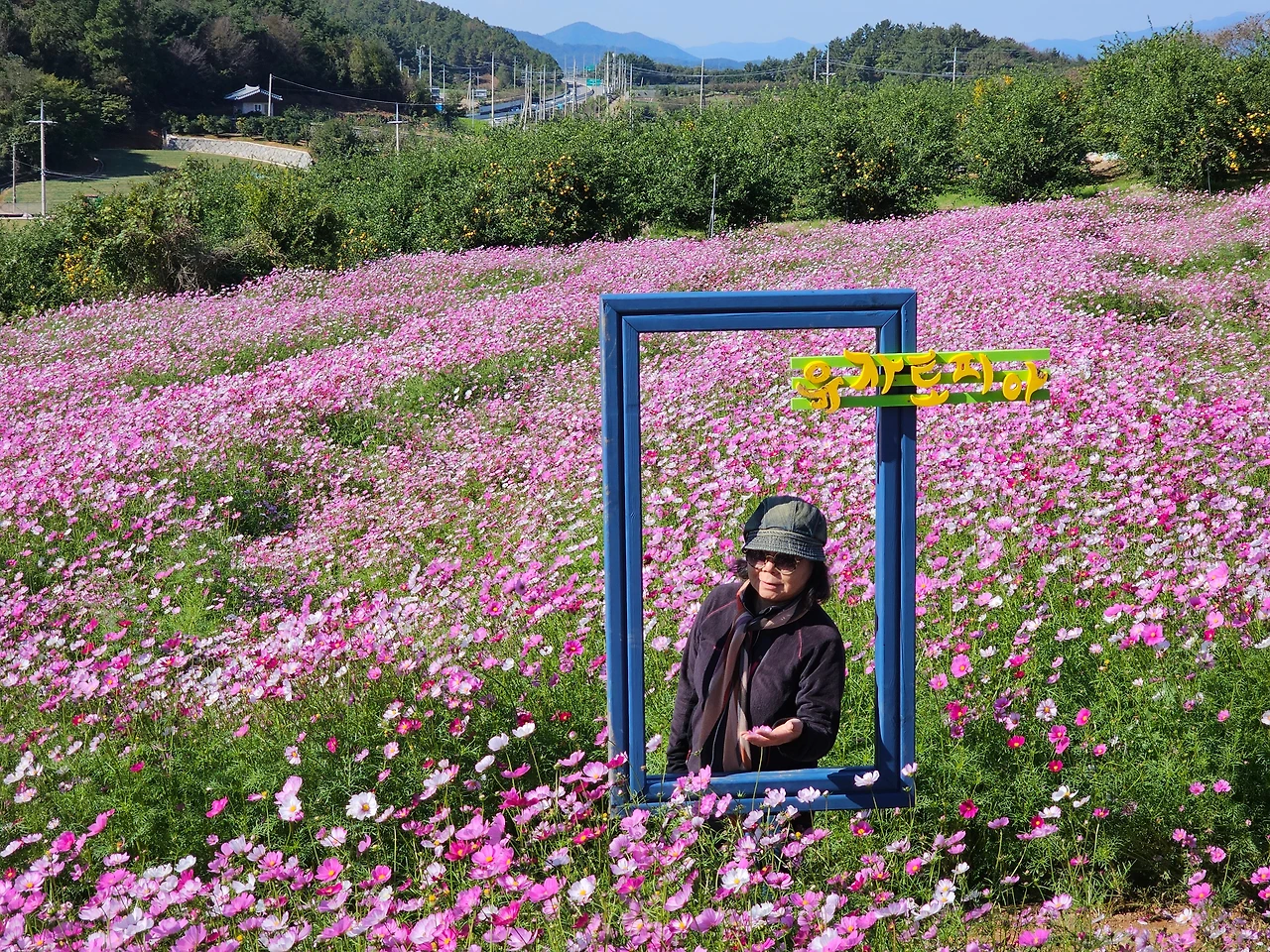 과연 고흥답게 유자 과수원은 길고 넓었고 사이사이 행사를 위한 조형물들이 설치되어 있어 즐기며 걷다 보니 코스모스 꽃밭과 금당화인가? 도 엄청 많이 피어있어 정말 아름다웠다