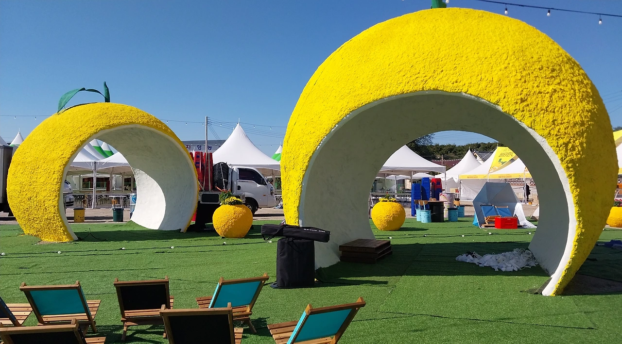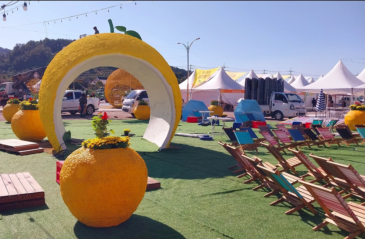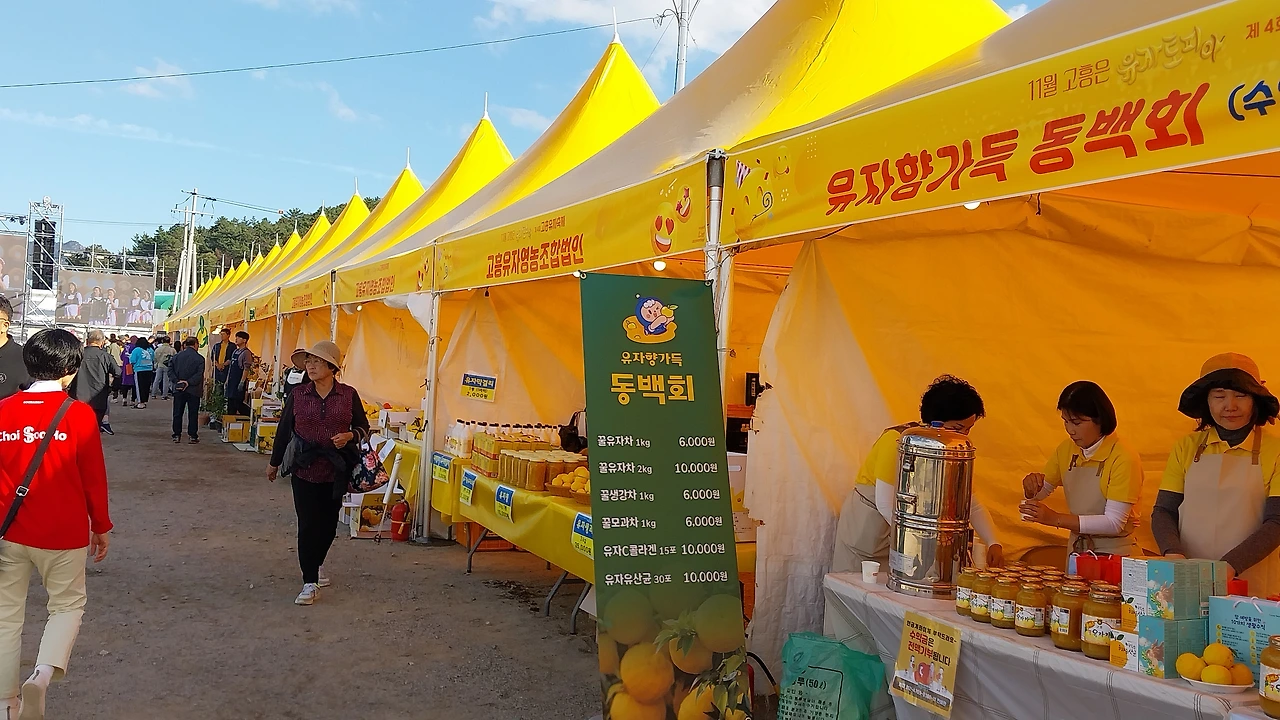 그리고 엄청난 규모의 유자축제 행사에서