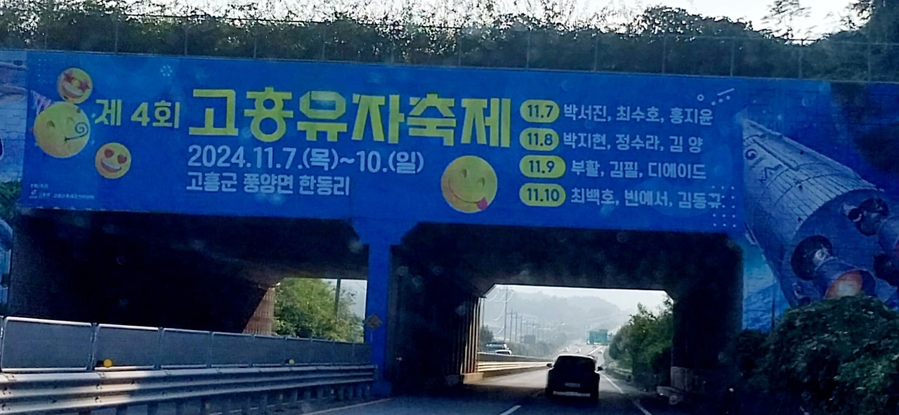 가수들의 공연도 보고 고흥의 자랑도 듣고 아름답게 밤하늘을 수놓는 드론쇼도 즐기다가 엄청난 인파에 놀라서 끝나기 직전 자리를 빠져나와 며느리와우리를 위한 유자청 두병을 구매하고 행사장을 빠져나왔는데도벌써 우리보다 더 빠르신 분들이 많아 길에는 차량이 거북이ㅡ