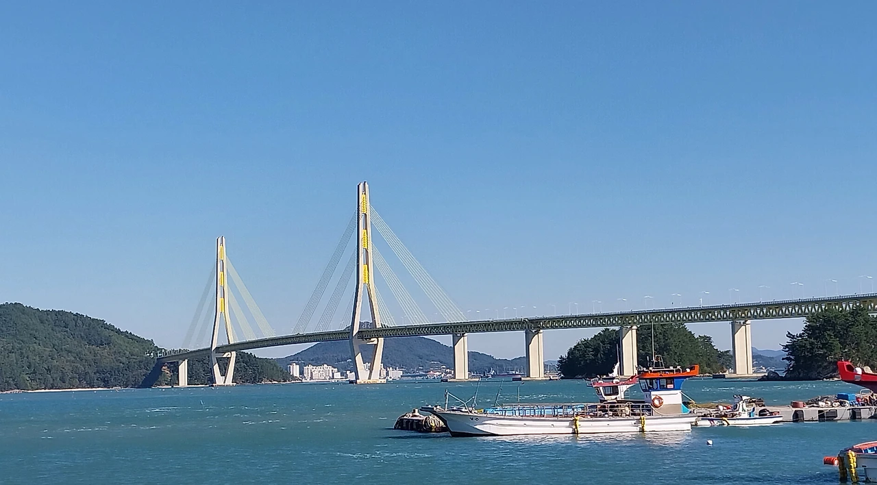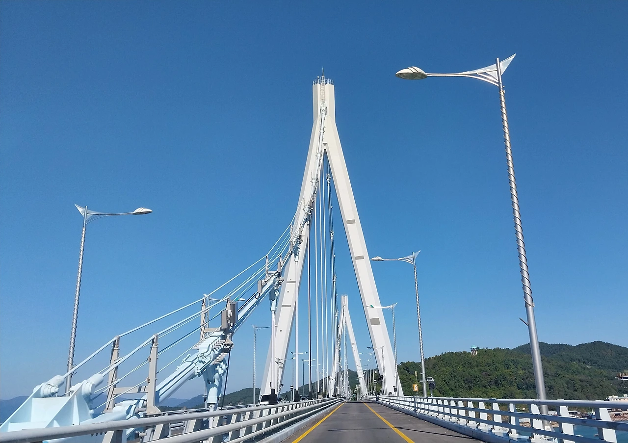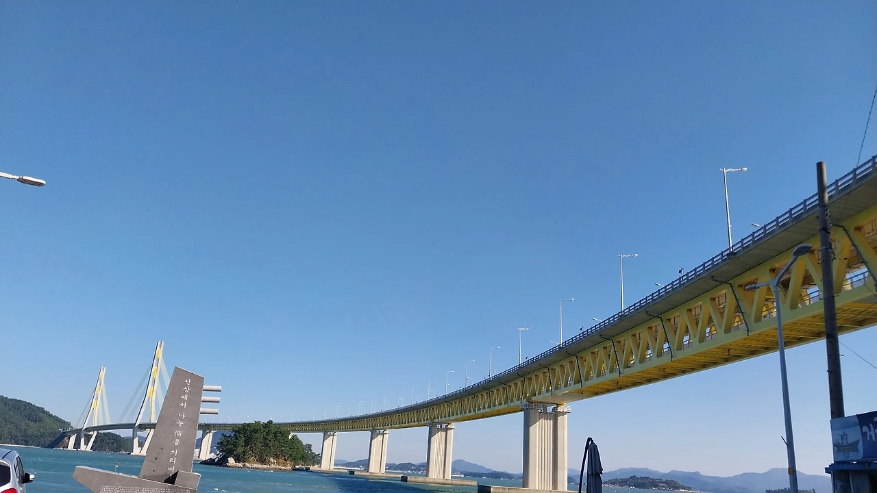 거금대교는 거금도와 소록도 사이를 연결한 거금대교는 22011년 개통된 약 2km가 넘는 긴 다리로 그 위용이 정말 대단했는데 다리를 건너 반대편에서 올려다보니 정말 아름다웠다