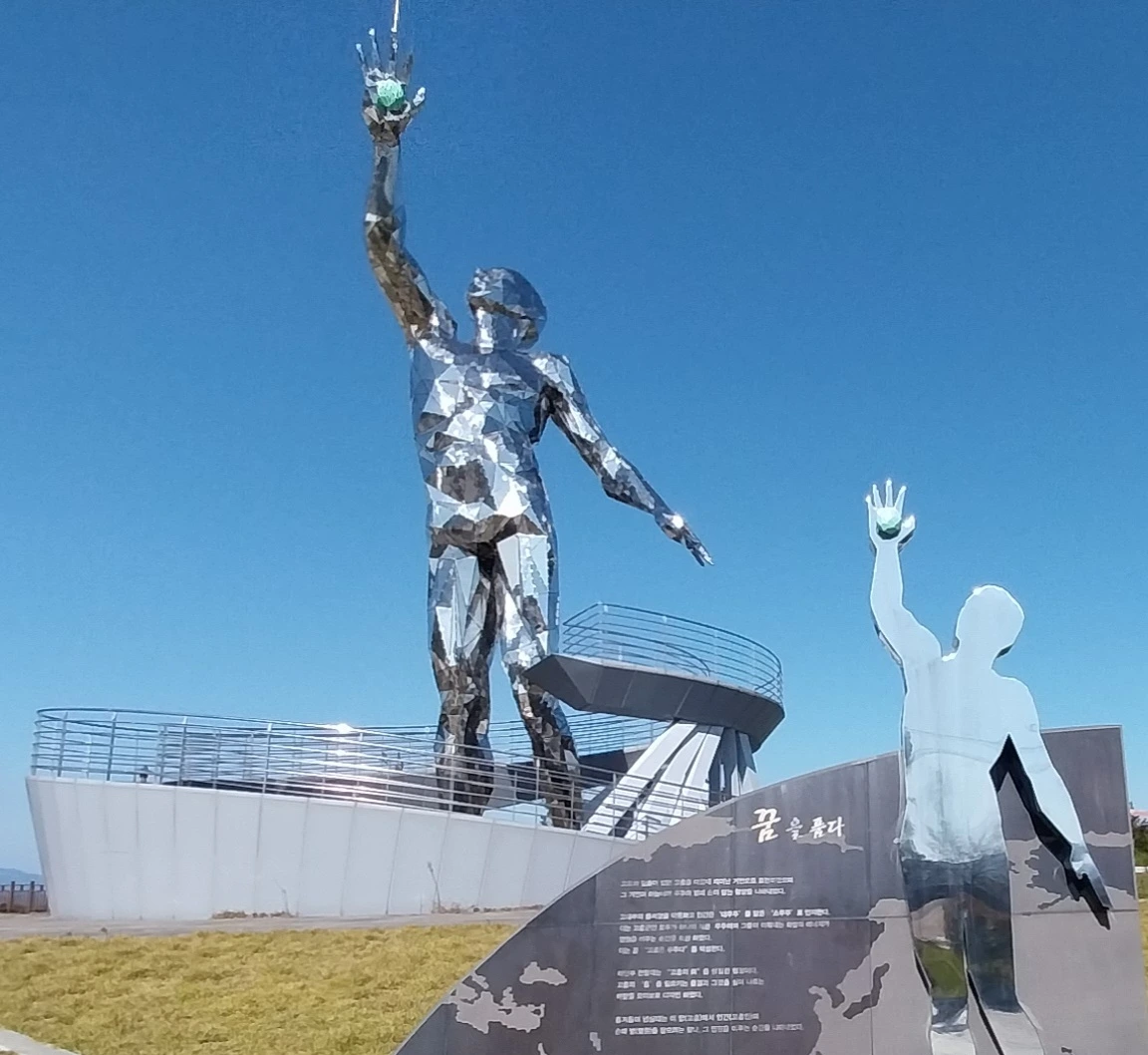 휴게소 옆 공원에 은빛 육체미 작품의 손에 쥐고 있는 꿈의 모형인가?를 들고 하늘 향해 포효하는 듯한 ㅡ꿈을 품다ㅡ의 작품을 지나 안쪽으로 가니 절이도 해전 승전탑이 있었다 이순신장군께서 임진왜란의 마지막 해인 1598년 7월 진린이 이끄는 명나라부대와 연합하여 고흥바다에 침입한 왜군을 격퇴한 절이도 해전 승전탑이었다
