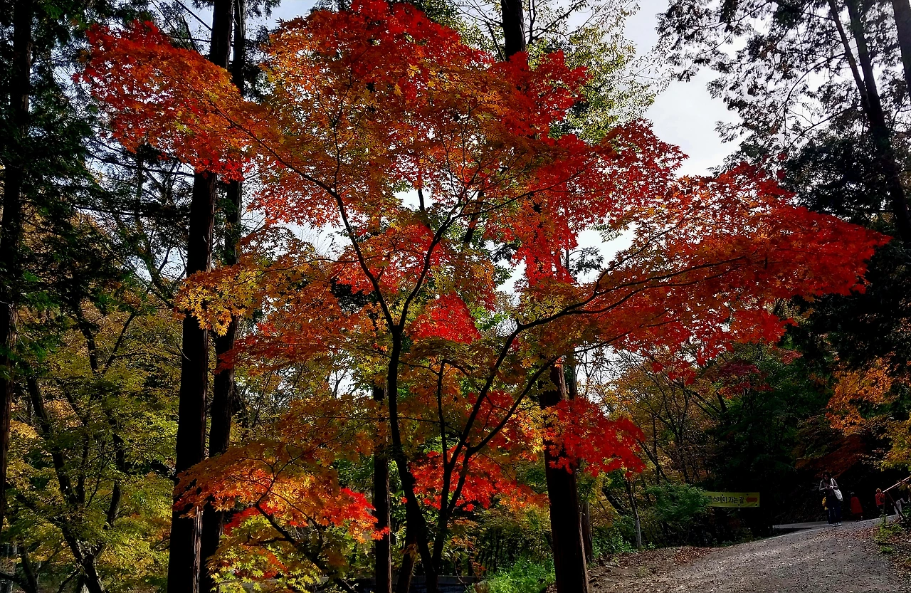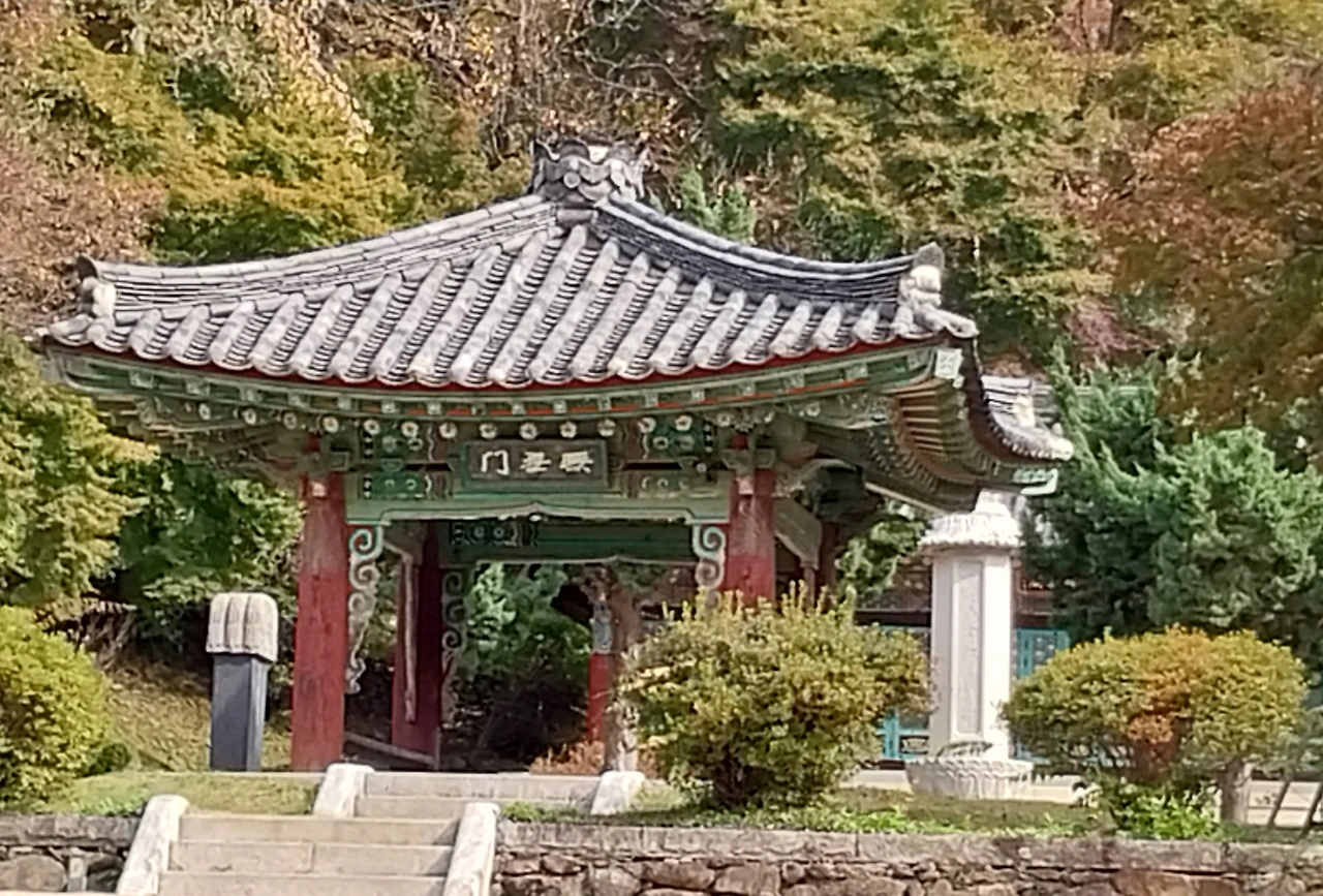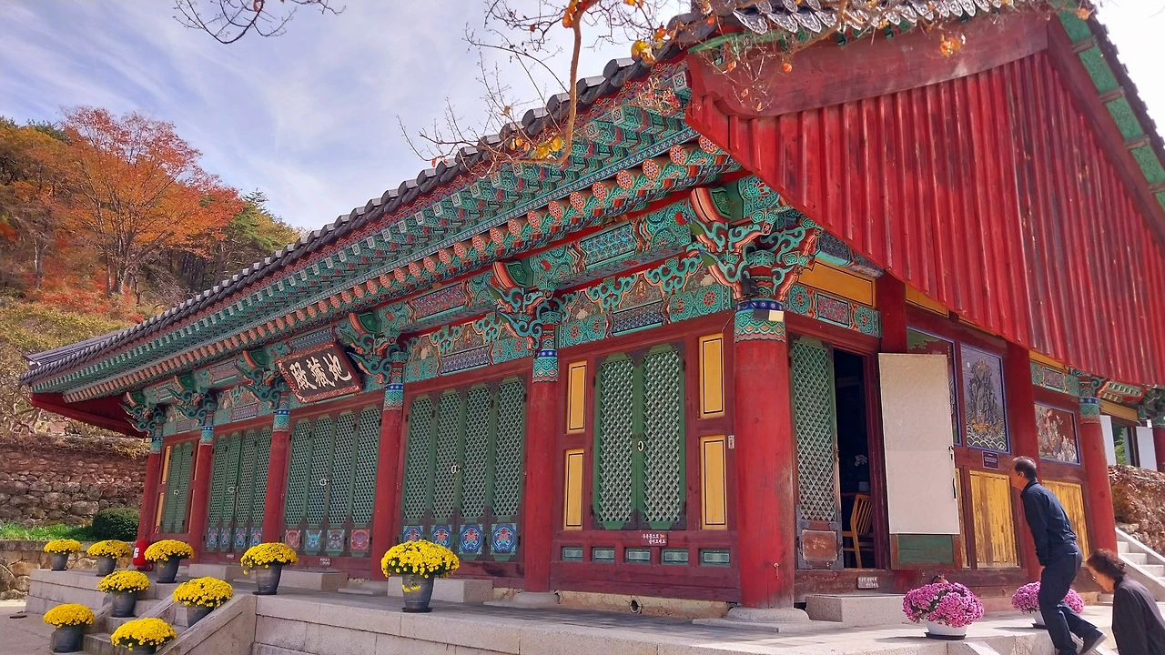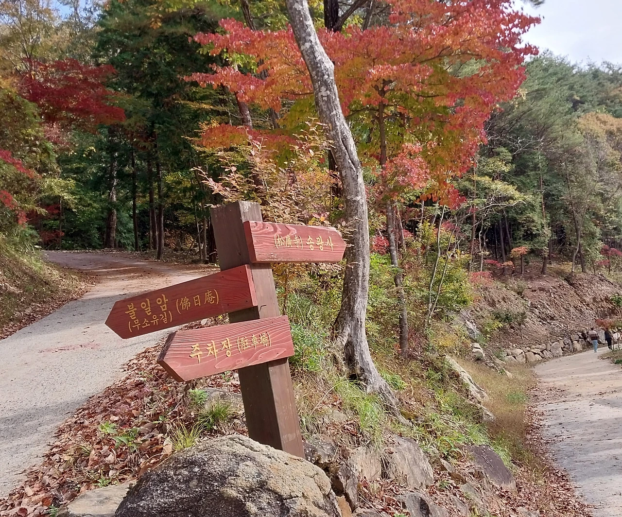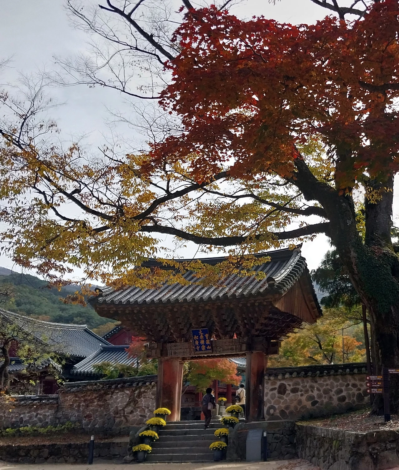 아주 커다랗고 단청이 화려한 불일문을 지나 들어가는 입구의 붉은 단풍이 어서 오라 맞이하고 있어서