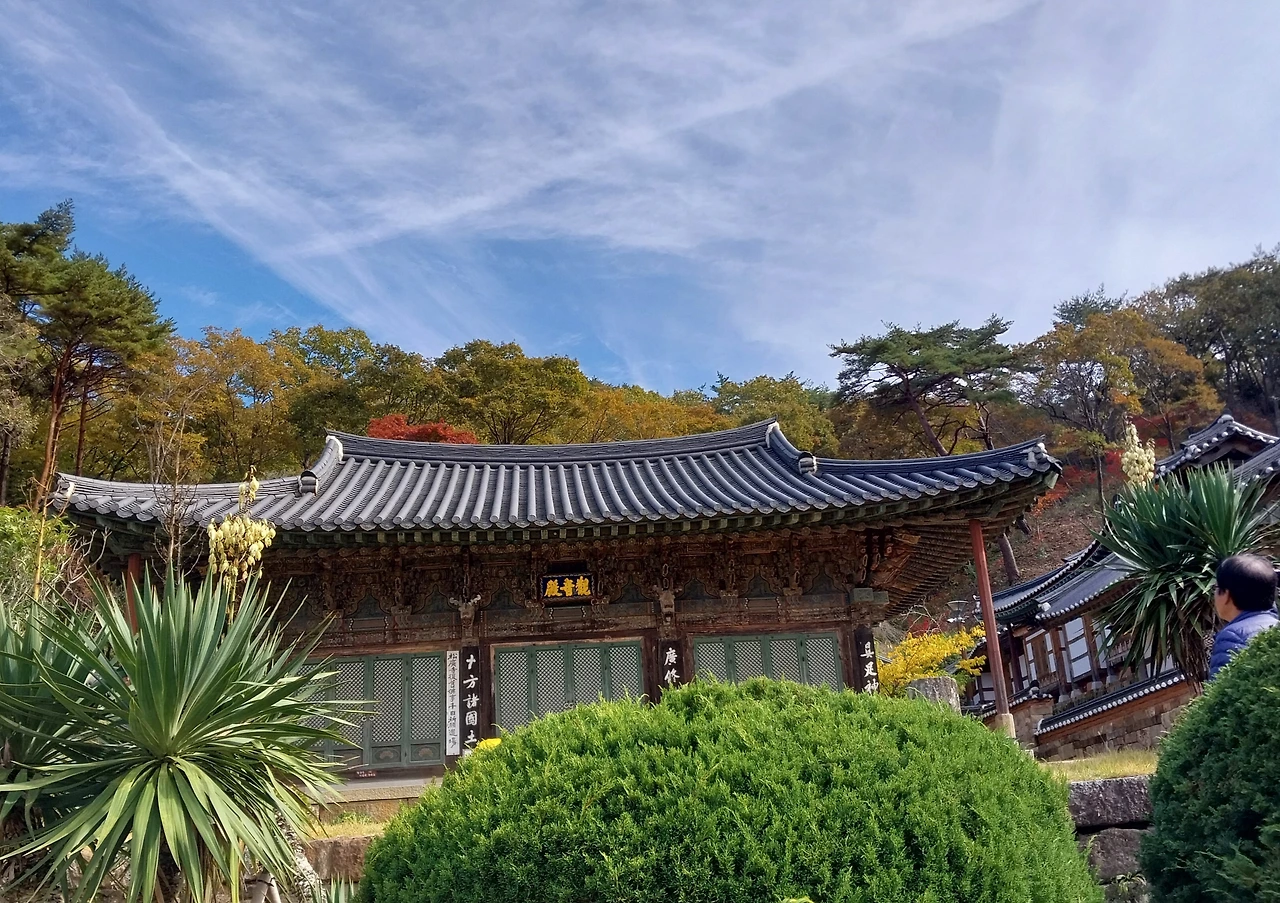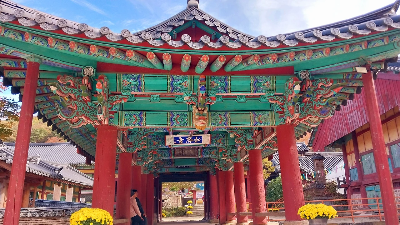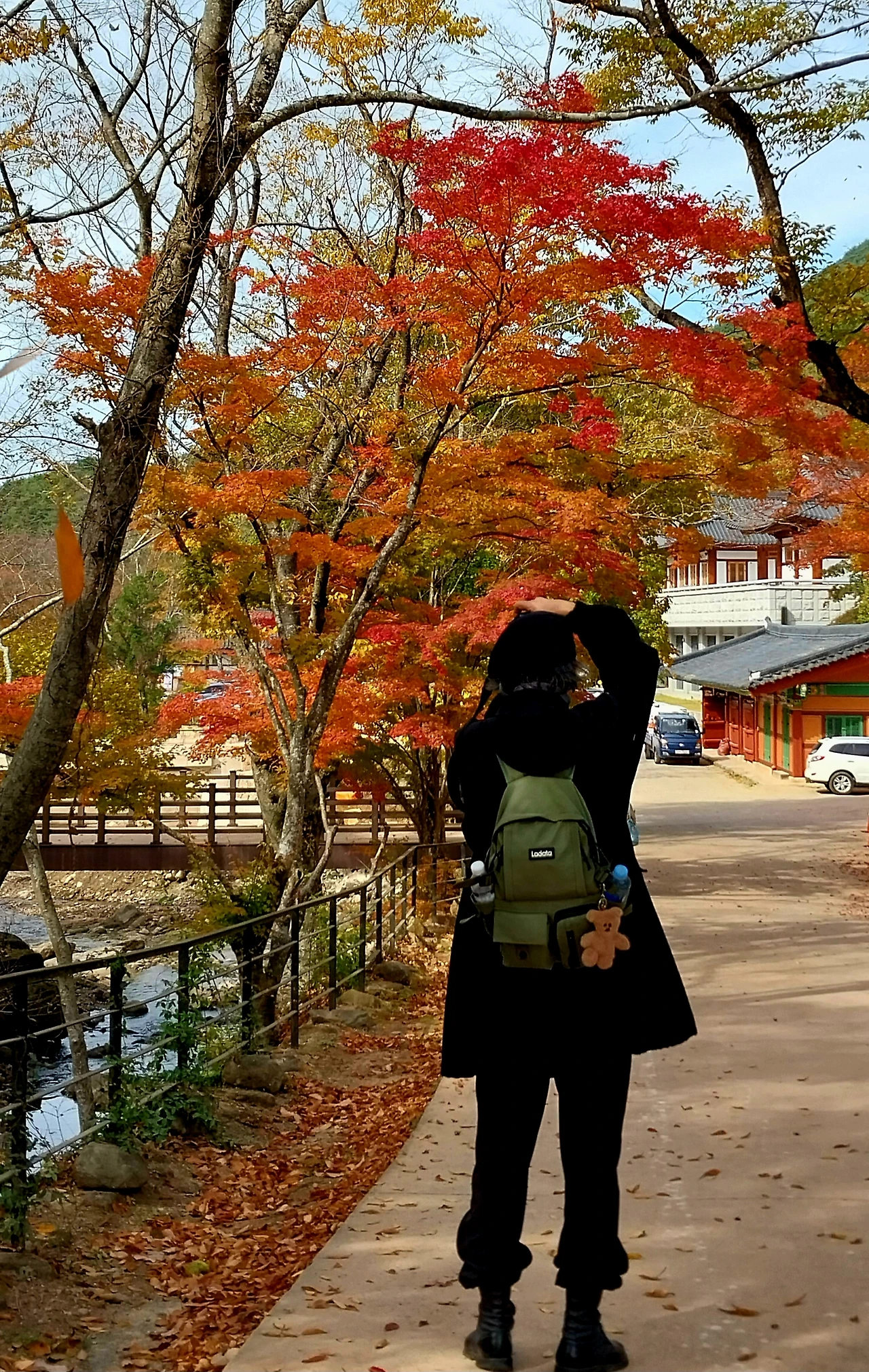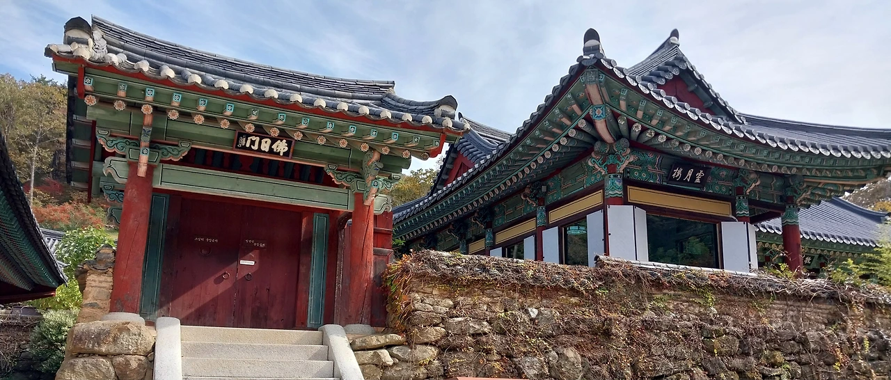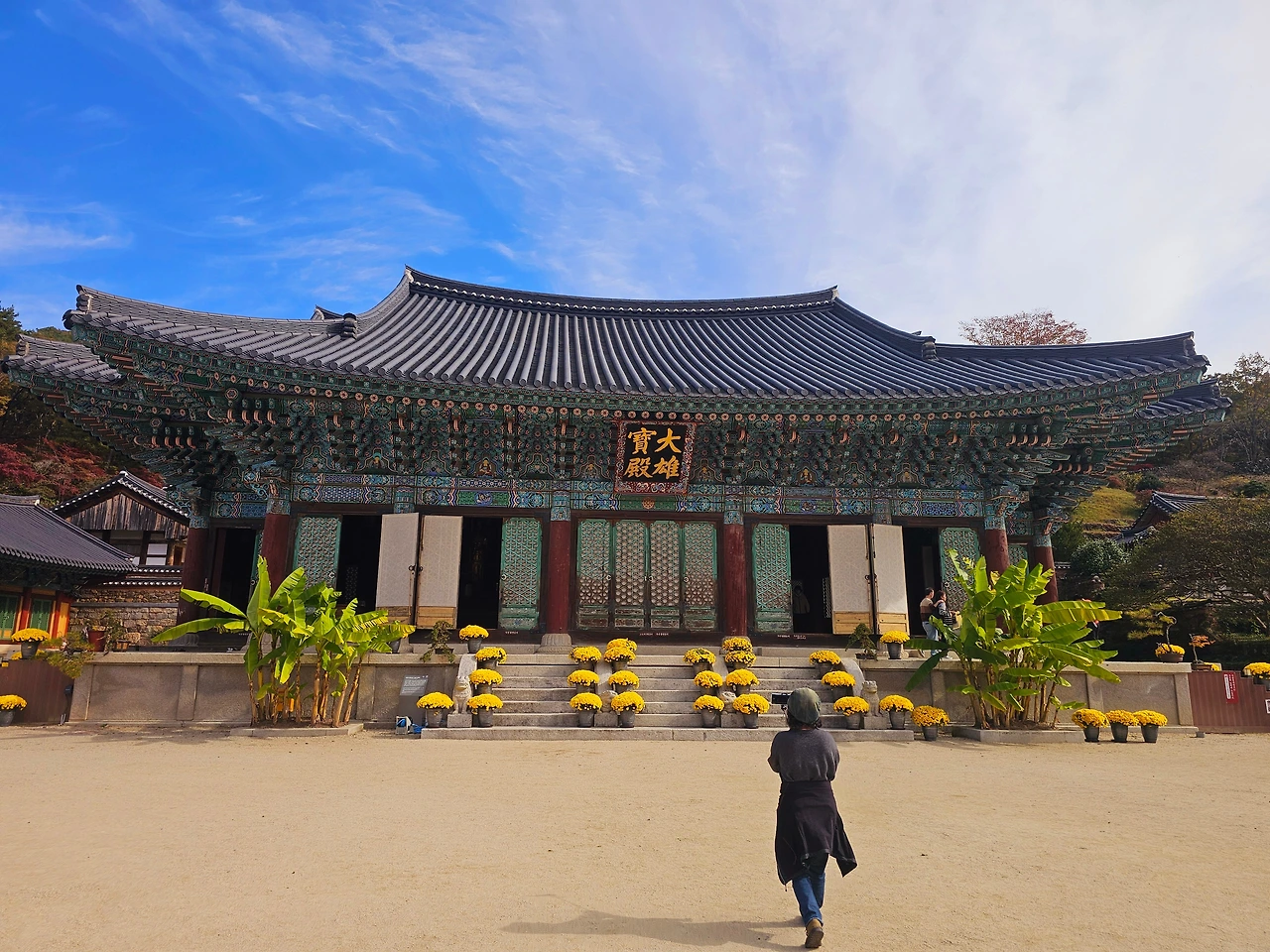 아주 커다랗고 단청이 화려한 불일문을 지나 들어가는 입구의 붉은 단풍이 어서 오라 맞이하고 있어서