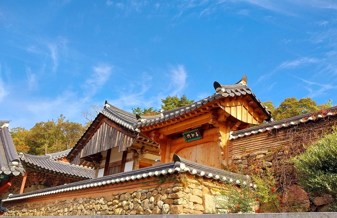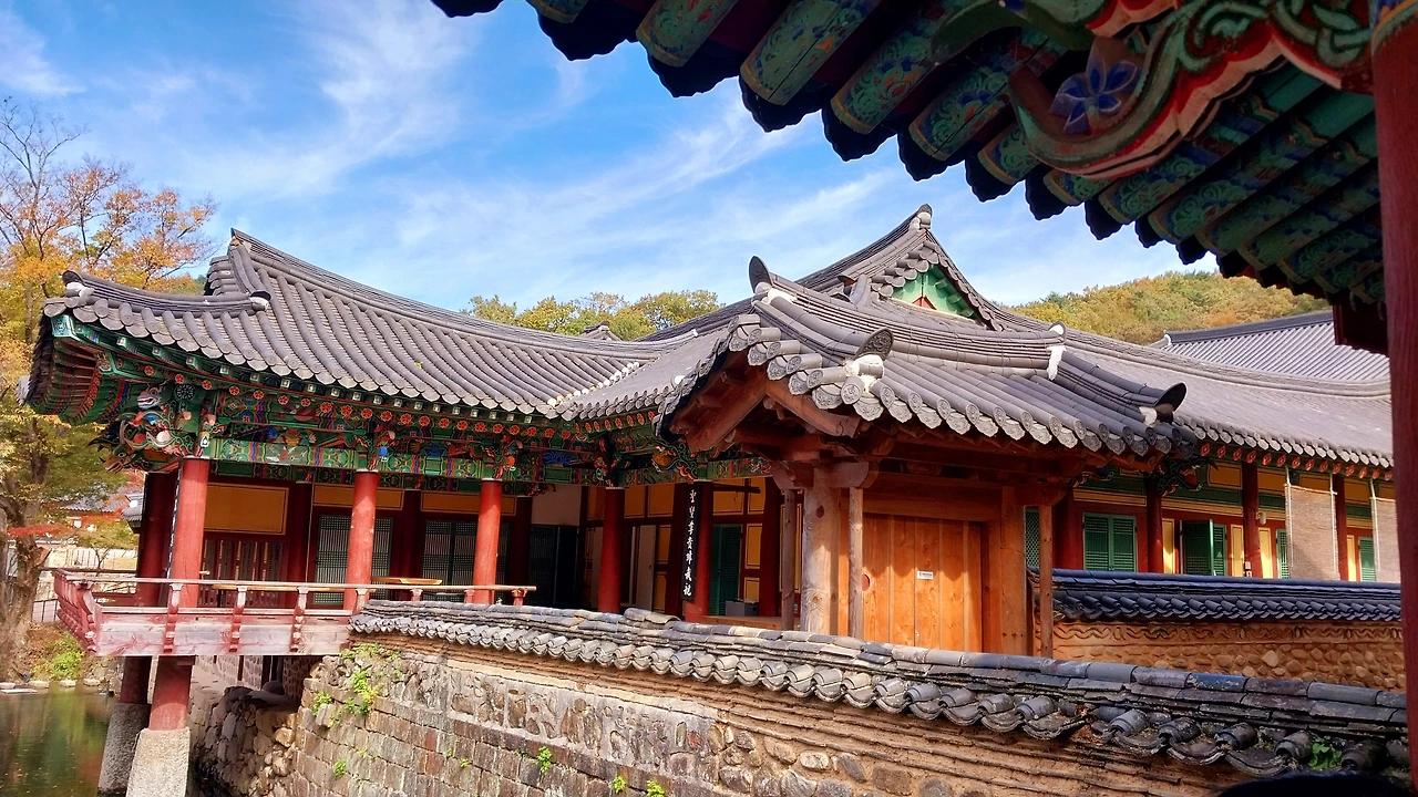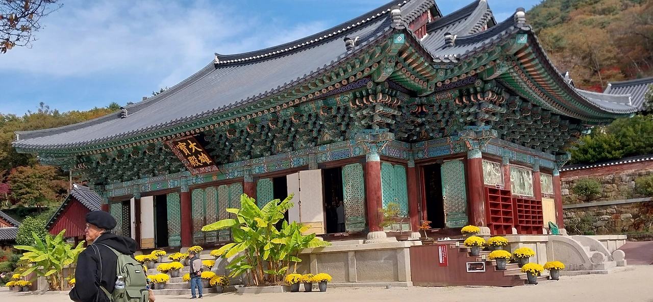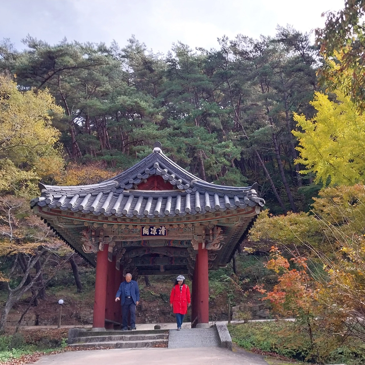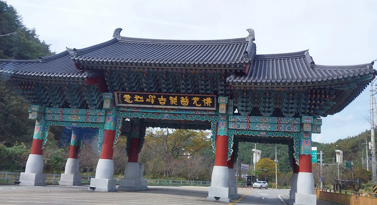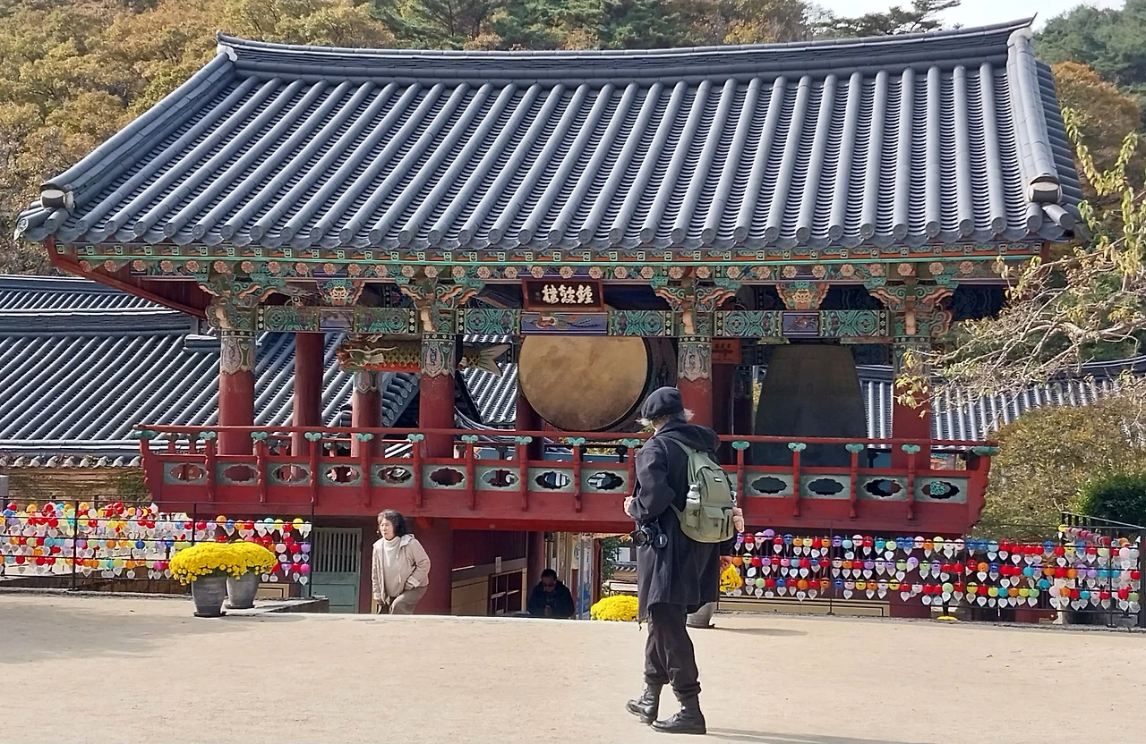 아주 커다랗고 단청이 화려한 불일문을 지나 들어가는 입구의 붉은 단풍이 어서 오라 맞이하고 있어서