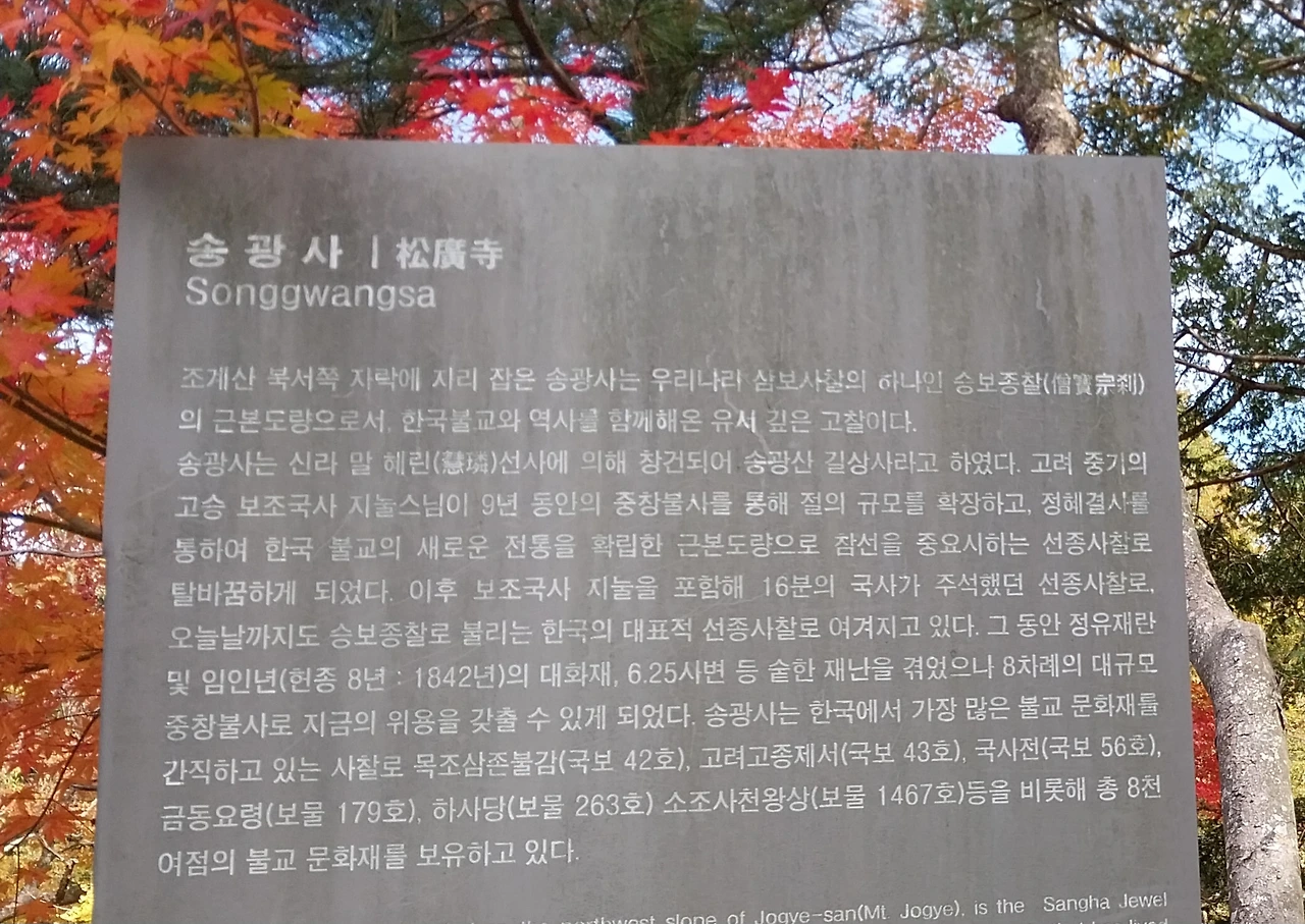 우리나라 삼대사찰인 해인사와 통도사를 다녀왔으니 이번엔 송광사를 찾았다