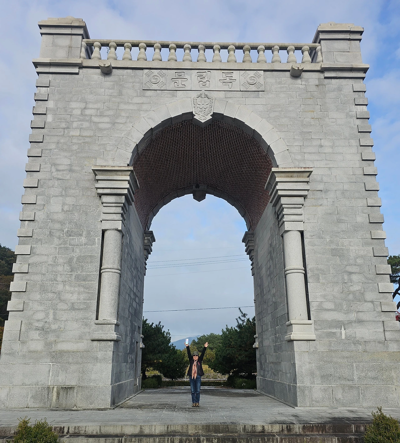 서재필 하면 먼저 떠오르는 독립문을 같은 크기로 이곳에도 설치하여 독립문 앞에 서서 만세 삼창을 외쳐 보고 선양관으로 향했다
