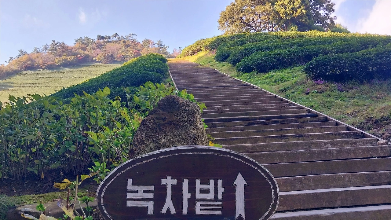 녹차밭을 올려다보며 계단을 오를수록 광활한 녹차밭이 큰소리로 외치고 있었다