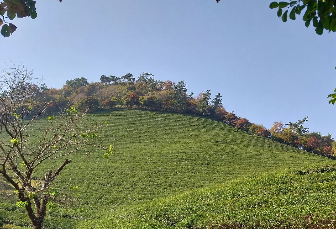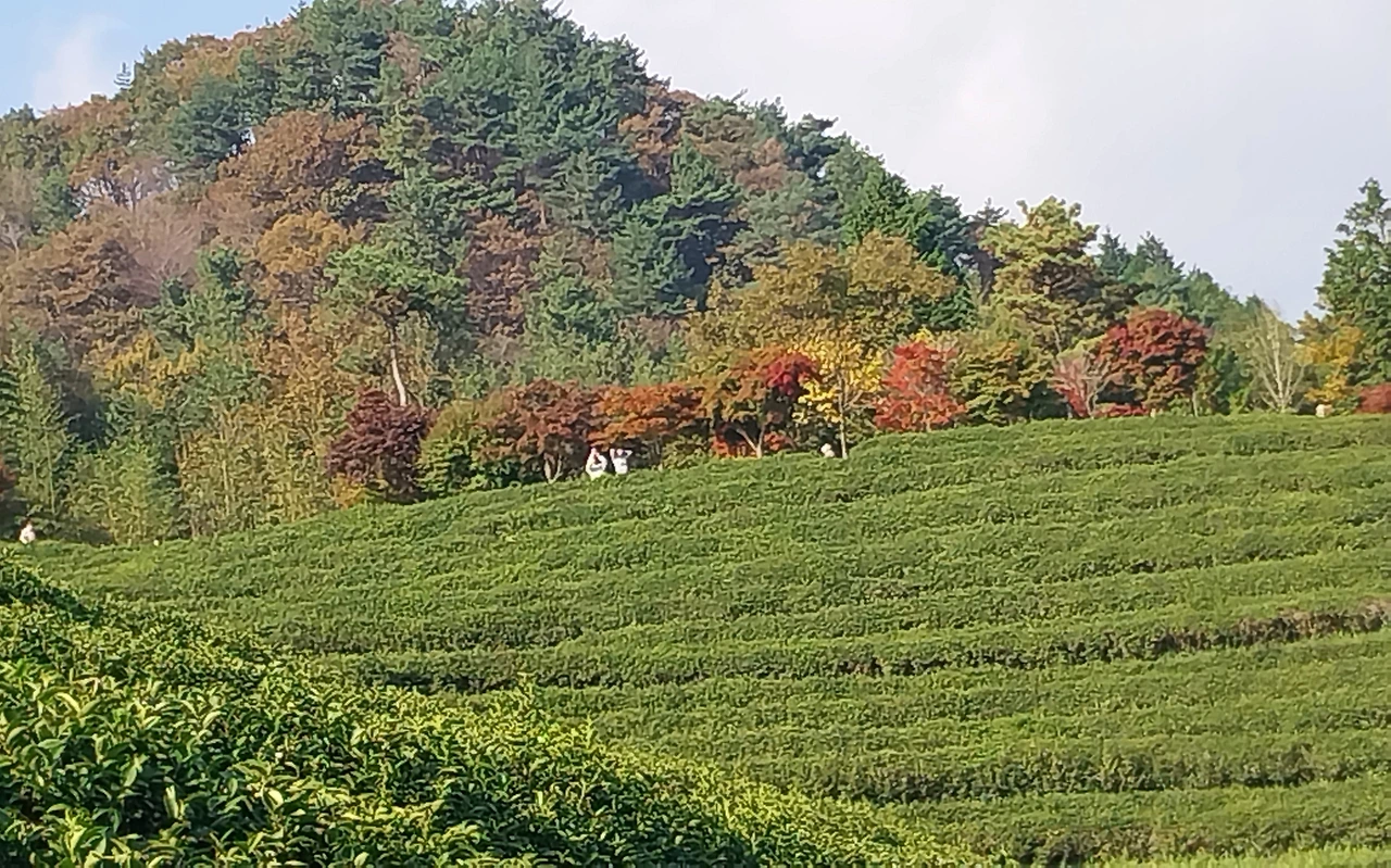 산 능선에는 고운 단풍도 녹차밭을 구경하고 있었다