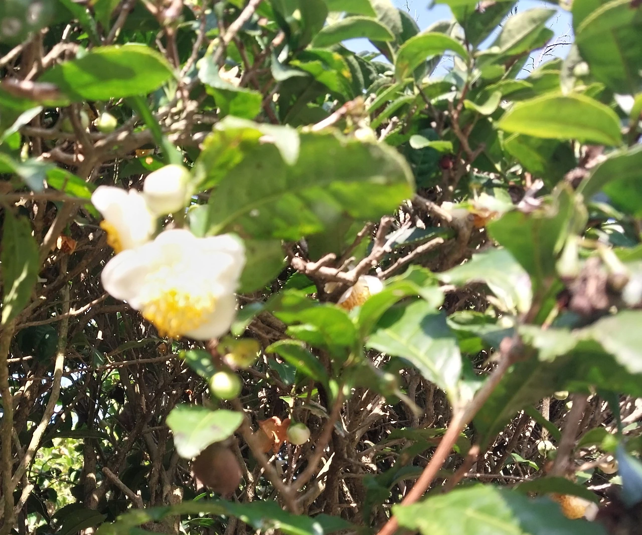 녹차밭을 돌아보다가 만난 사이사이 피어난 녹차꽃의 미소는 소녀의 볼우물핀 수줍은 미소 같았다