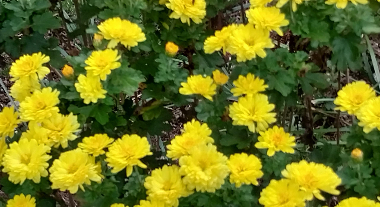 샛노란 국화꽃이 피어있는 길 옆에 녹차밭 이름표에 화살표를 보니 위로 향하는 계단이 어서 오란다