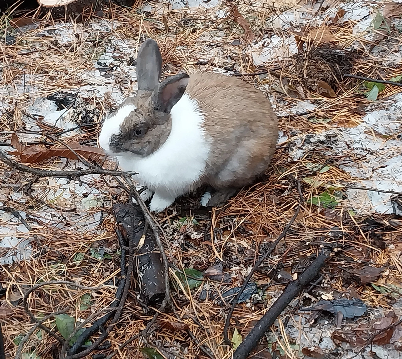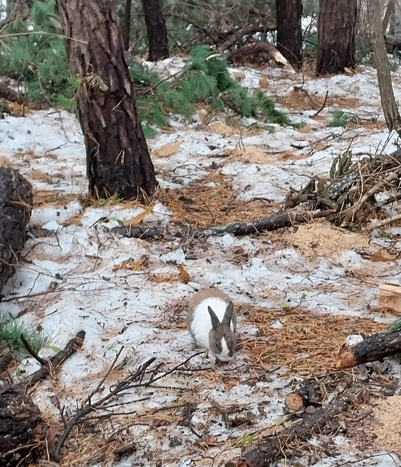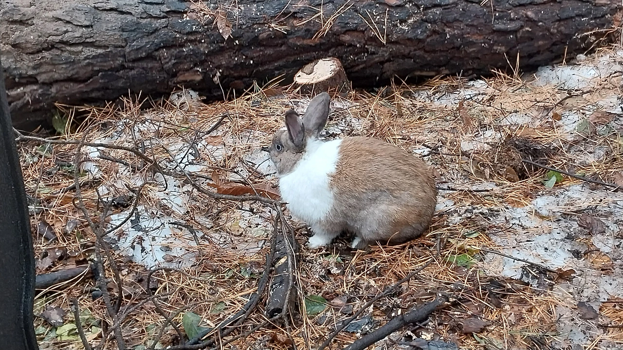안타까움 누르며 걷는데 토끼 한 마리 쓰러진 나무옆에 멍하니 바라보며 있다