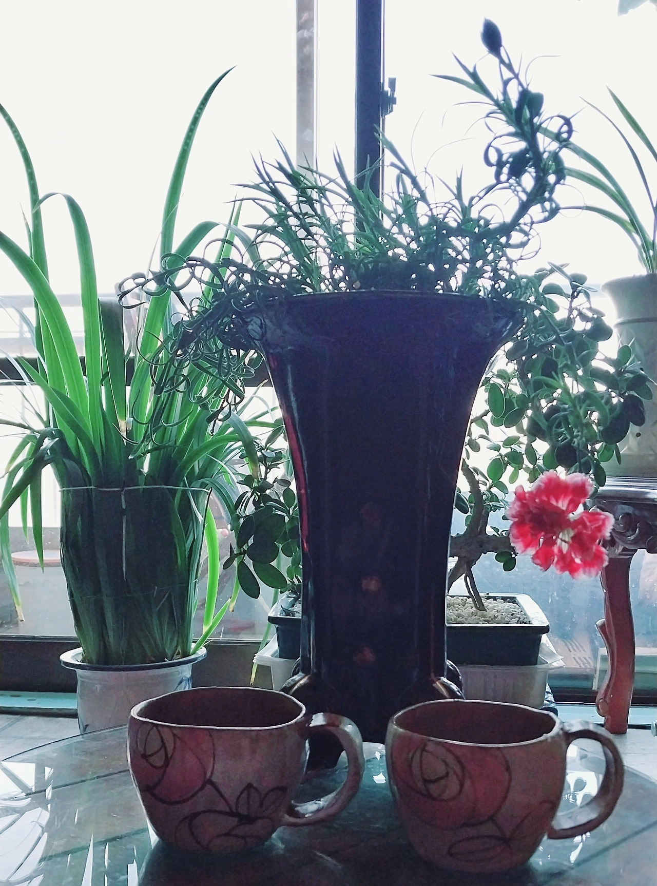 차탁 위의 진분홍 빛 카네이션