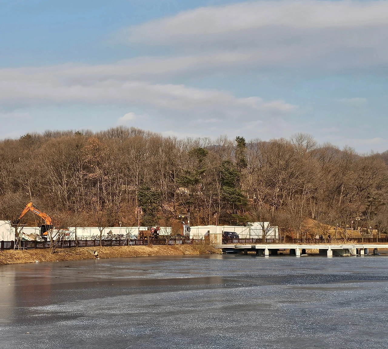 겨울의 오후 햇살 받으며 율동호수공원 둘레를 천천히 걷는다