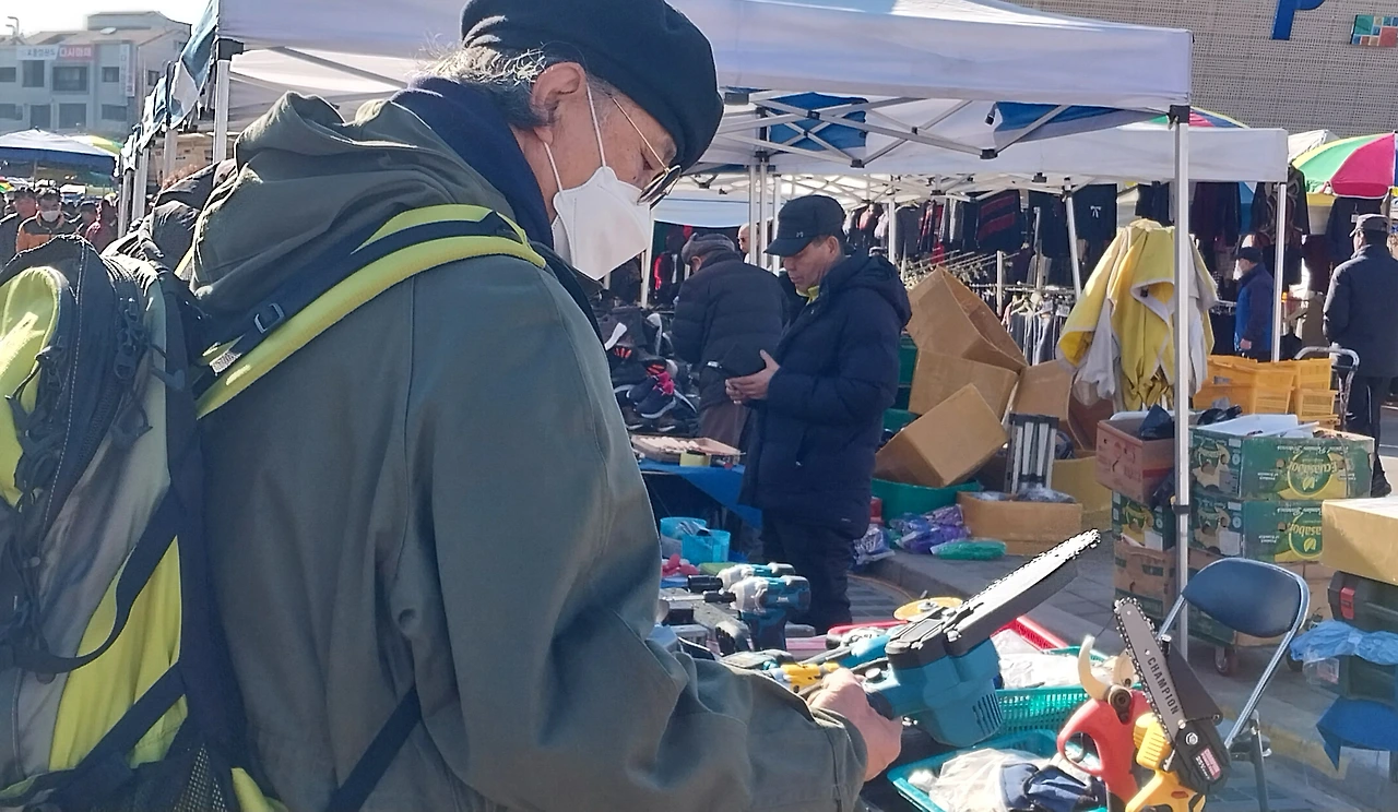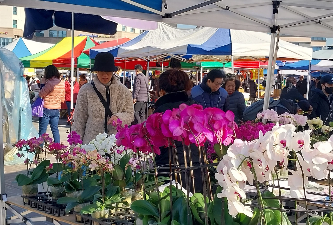 짝꿍은 벌써 기계들을 파는 가판대 앞에서 맘에 드는 무언가를 들고 주인에게 값을 묻고 있었고 가지가지 상품들과 농산품, 공산품, 화회농장을 통째로 옮겨온 듯한 아름다운 꽃들이 손짓하고 있었다