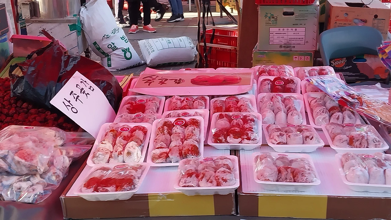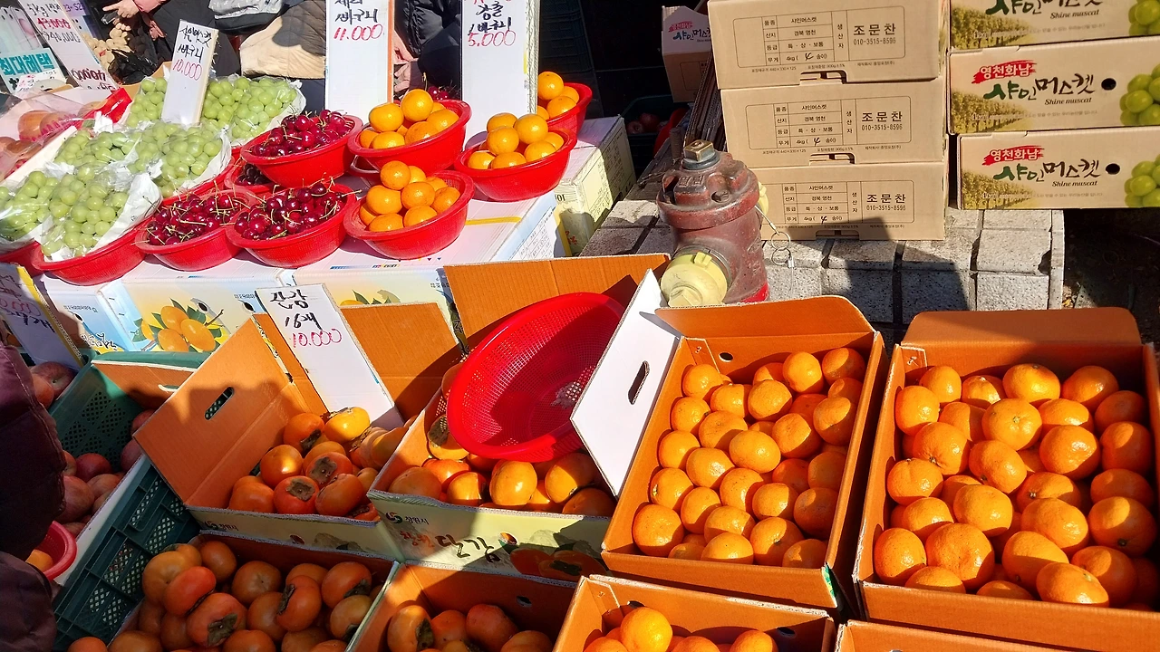 길을 건너 가려다 바로 앞에 가게에 많은 사람들이 과일구매를 하고 있어 살펴보니