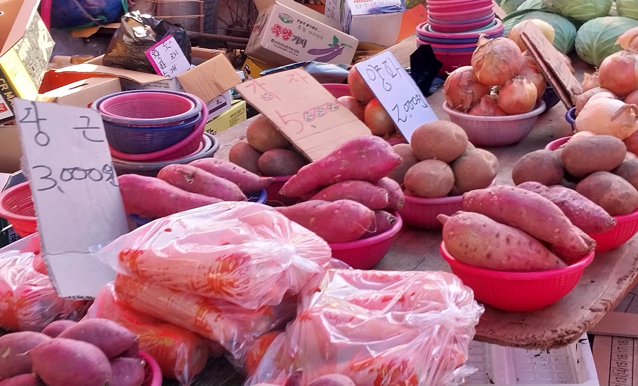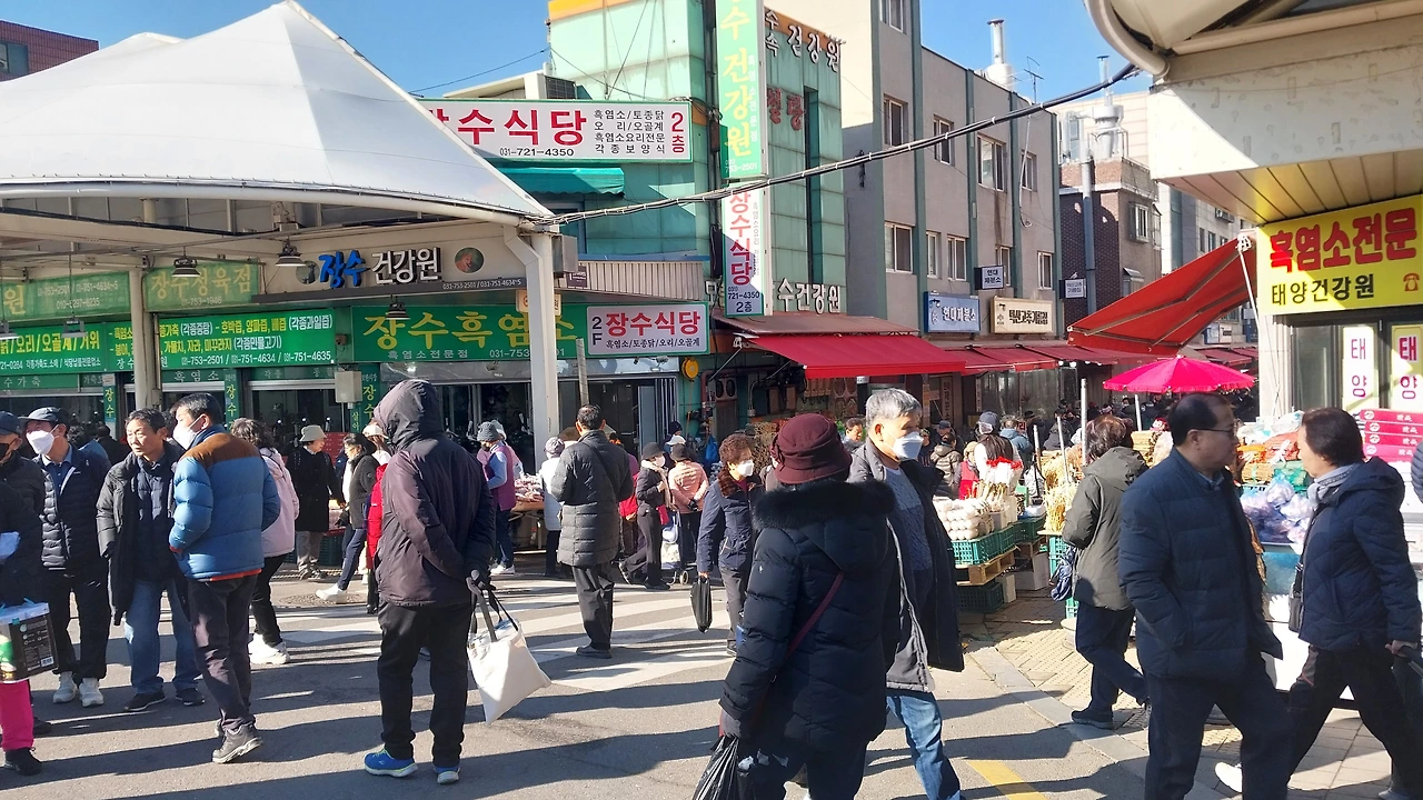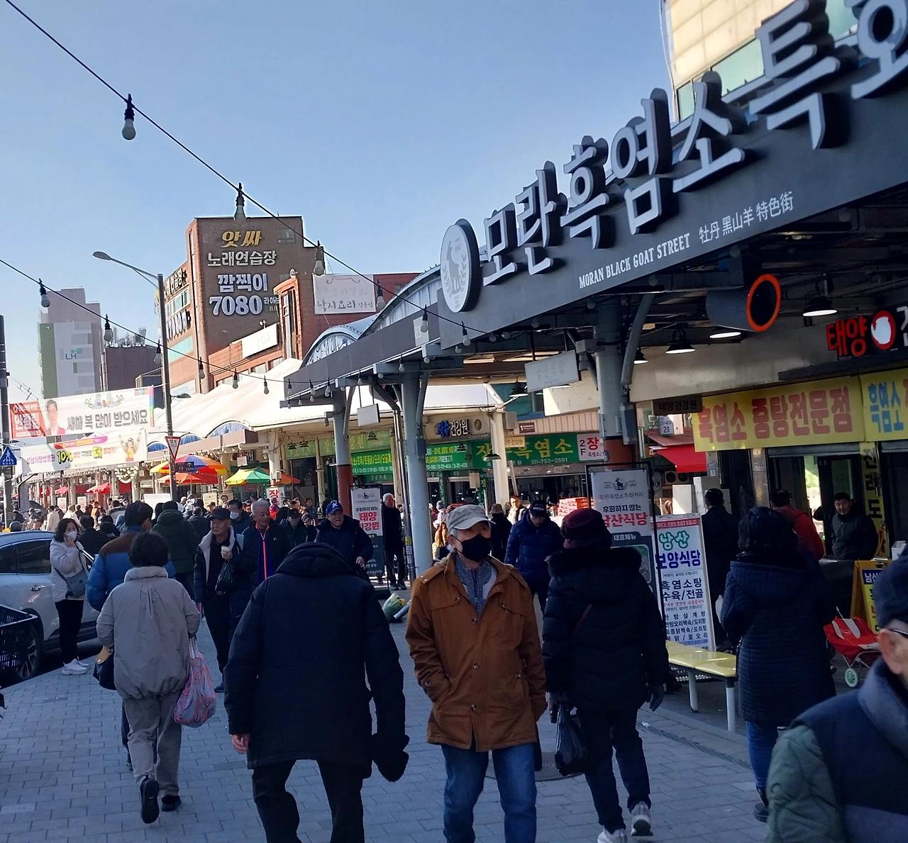 입구에 모란전통시장 이름표가 길 가운데 떡 버티며 반기고 예전에는 눈길 주기 힘들게 개고기를 팔던 그 즐비한 상가가 이제는 모란 흑염소 특화거리로 탈바꿈되어 있었으며 옆 골목에는 농사지은 농산품을 팔고 있는 분들의 터전이었다