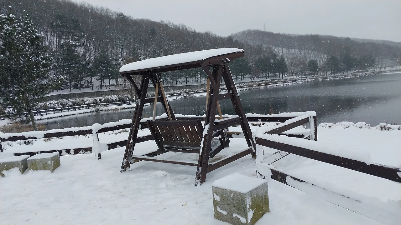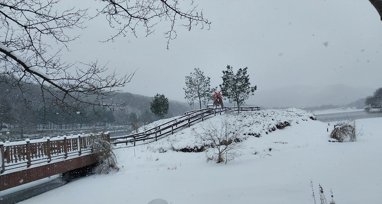 하얀 호반길 즐기며 빨간 풍차 언덕