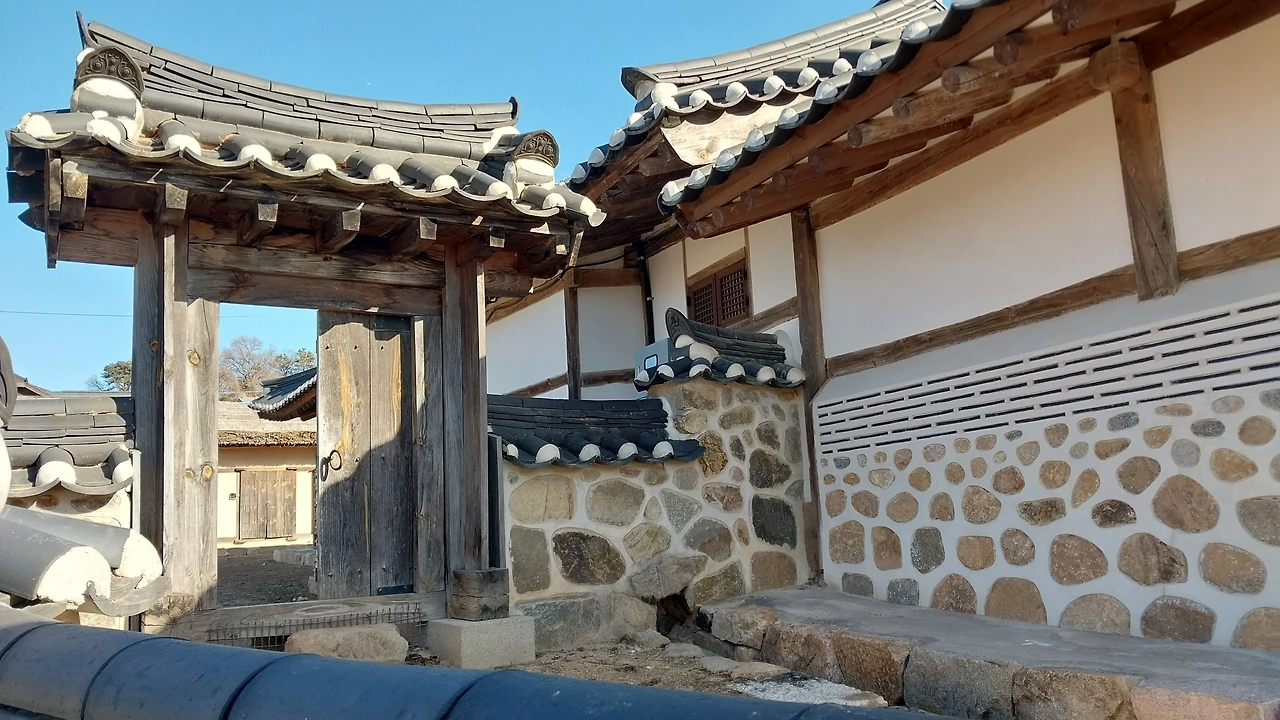 뒷마당을 돌아 한옥이라면 어느 곳에서나 멋을 풍기는 협문이 돌담으로 이어져 특히 위풍을 자랑하고 있었다