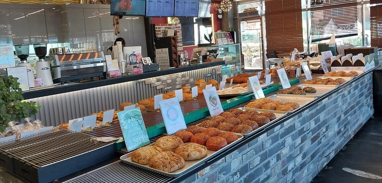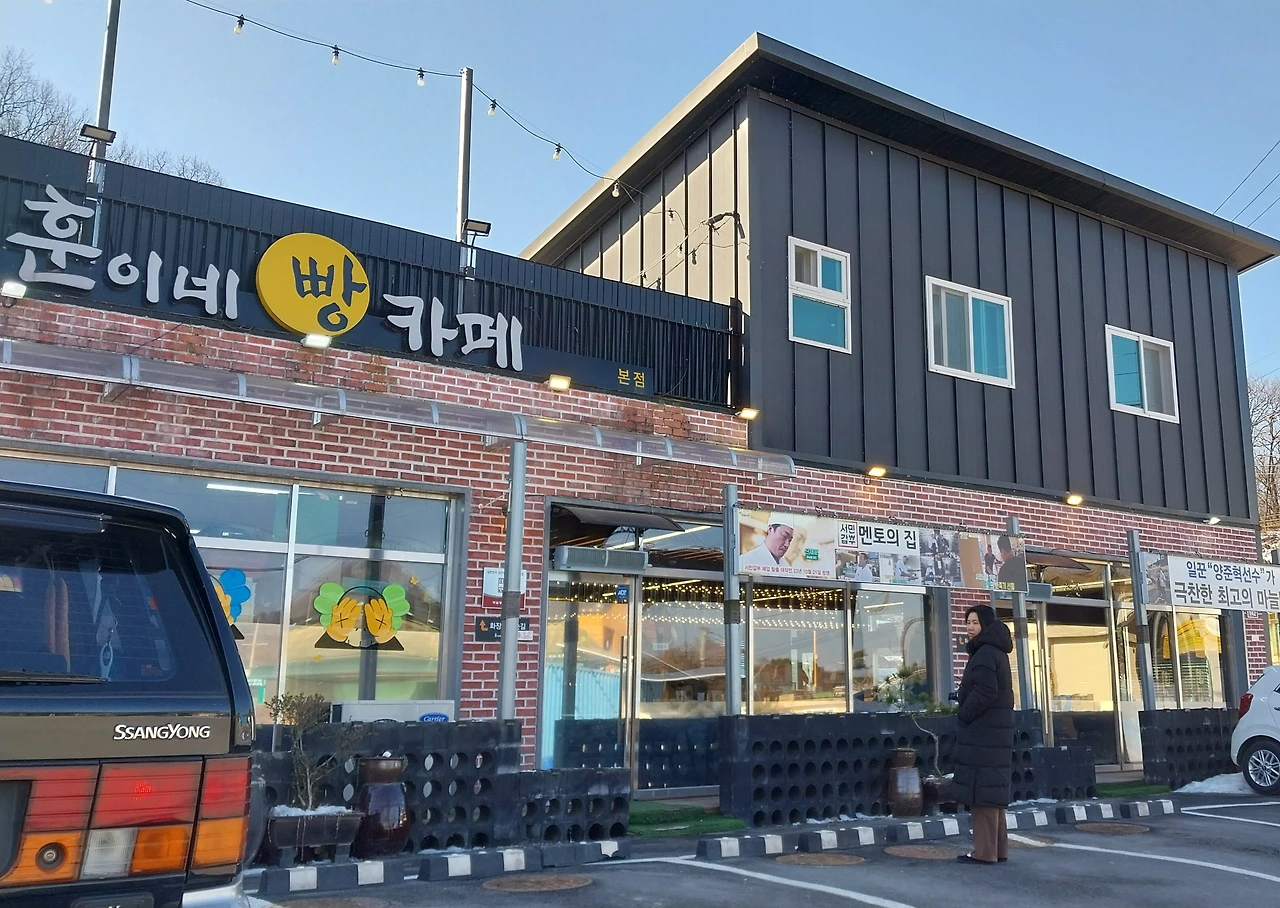 암튼 짝꿍의 안내에 따라 시골 마을의 길가 커다란 현수막에 ㅡ대가의 빵집 ㅡ이라고 바람 타고 소리치는 빵집 앞에 주차를 했다