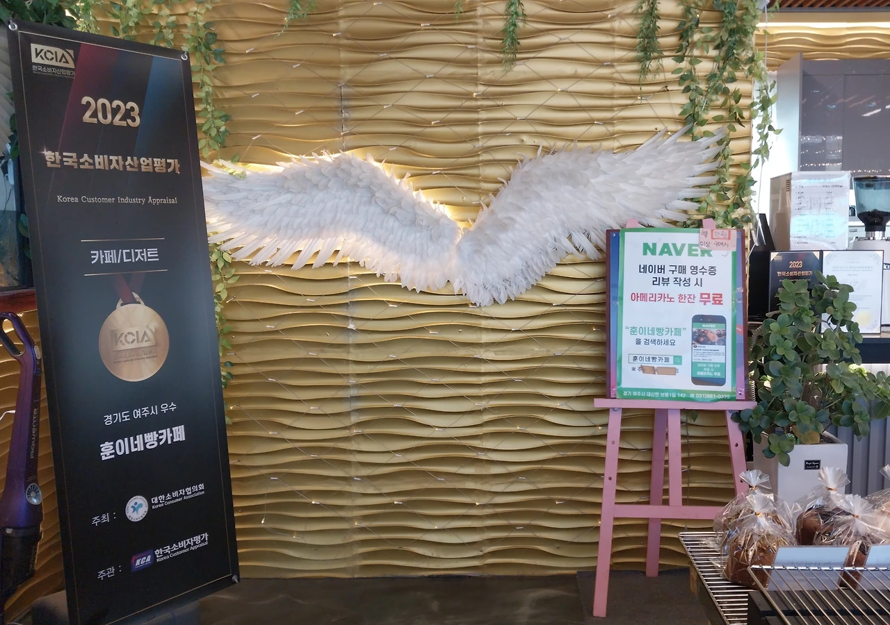 주문대에 유명인의 사인지도 유리밑에서 다녀갔다는 인사를 하고 인증사진을 찍는 천사의 날개도 있어 딸에게 서보라고 하니 질색을 하며 빵을 들고 자리로 간다