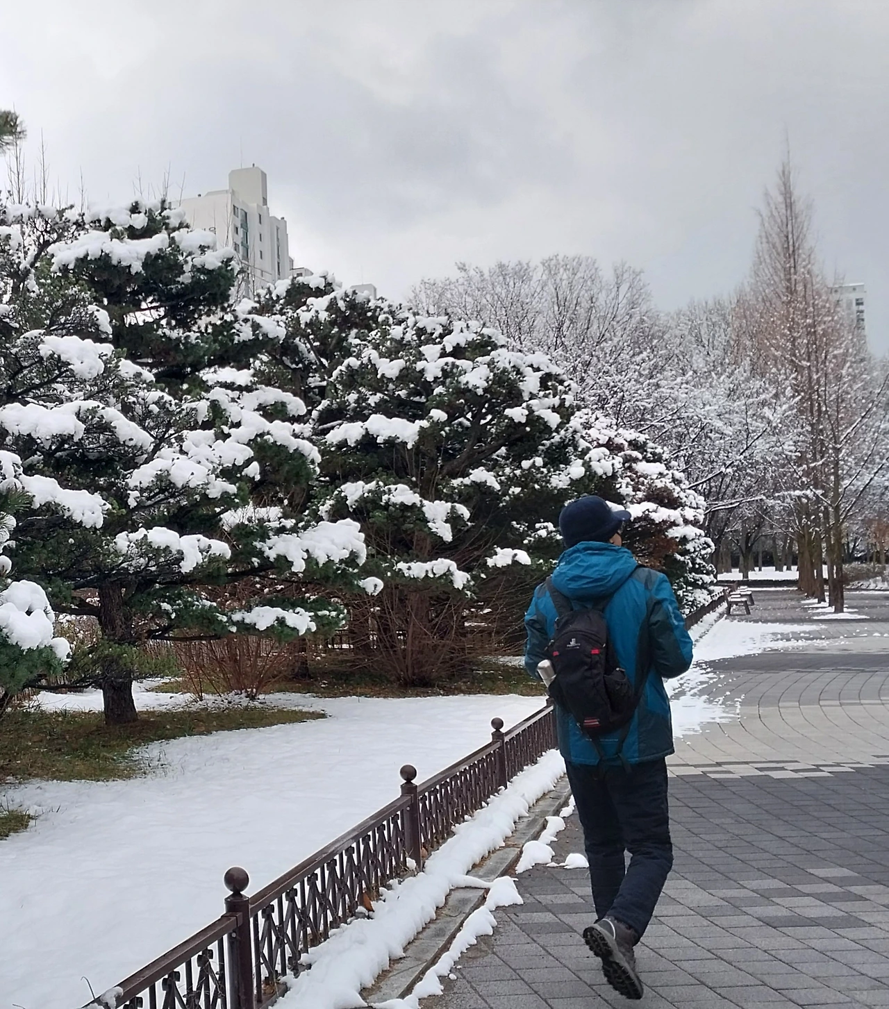 바쁜 걸음 옮기며 집 앞부터 공원까지