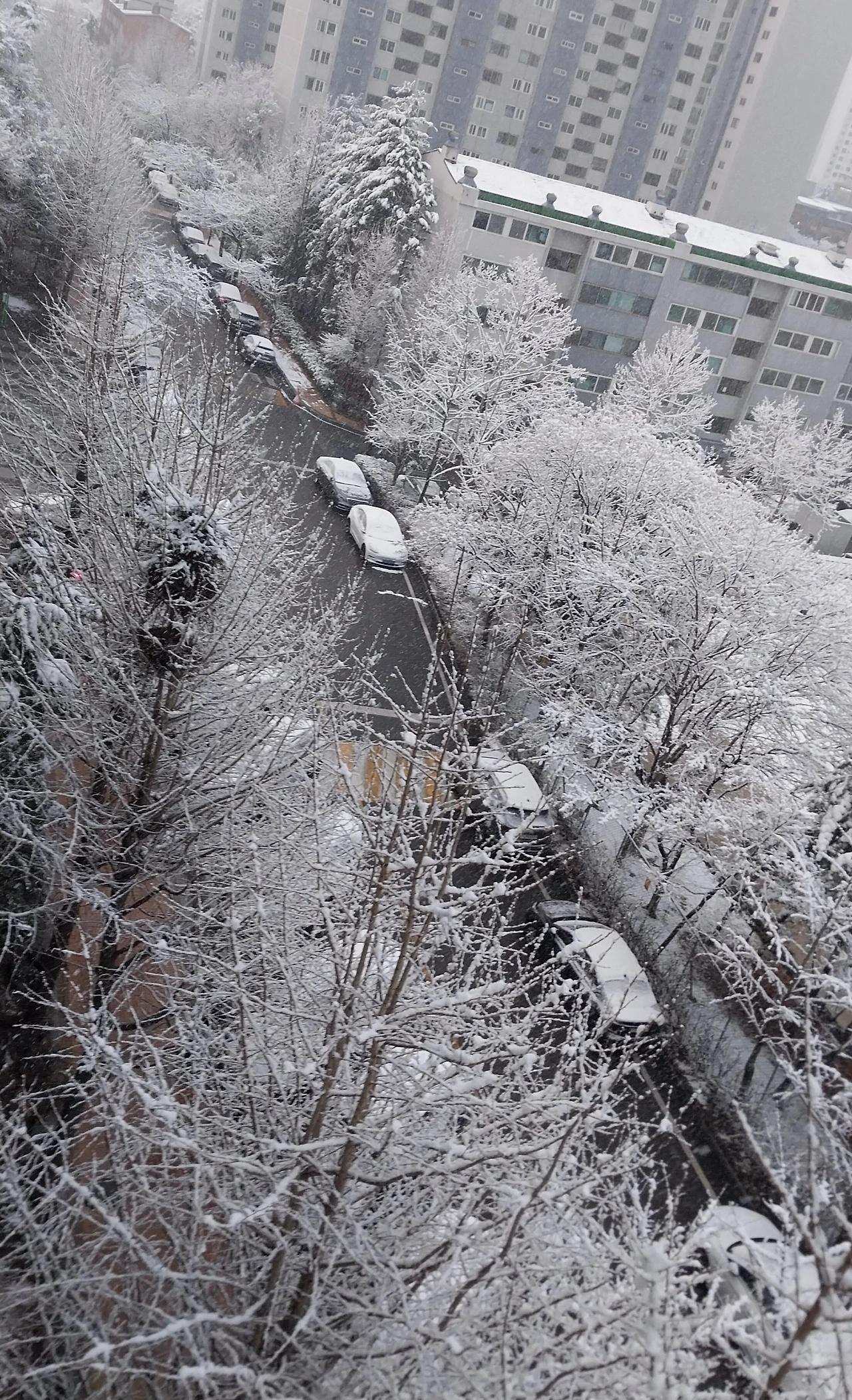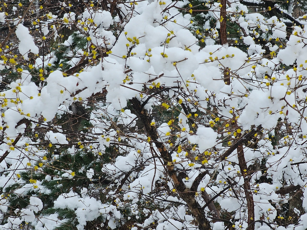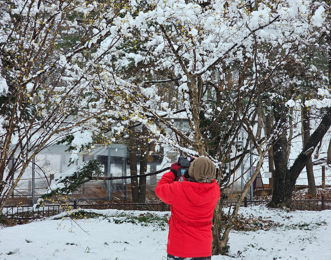 봄님 맞이 새하얀 눈 소리 없이 찾아와