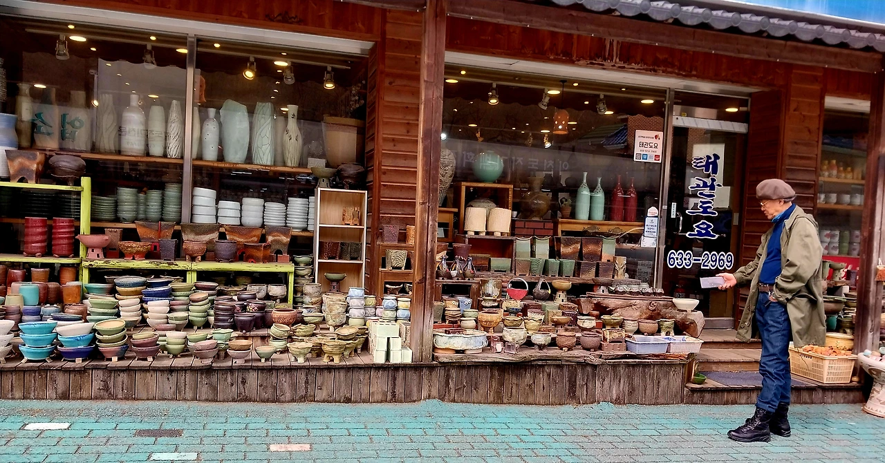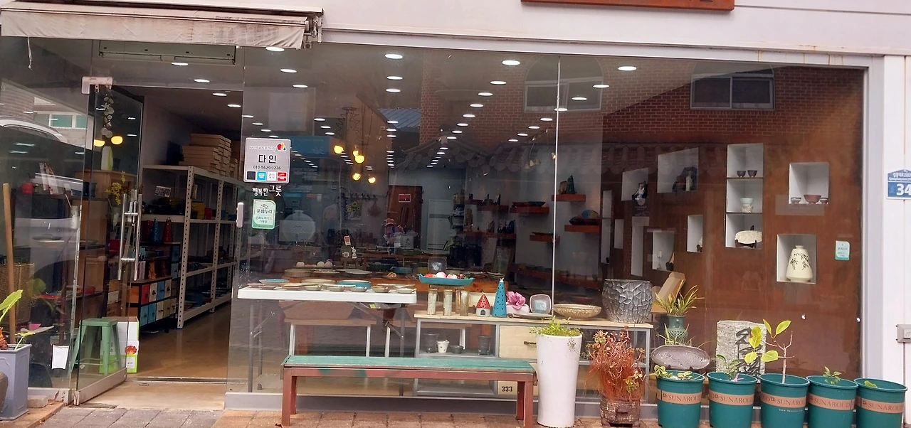 오전시간이라 가계 안으로 들어가기는 미안해서 밖에서 들여다보며 가는데 공방마다 특색이 있었고 특별히 자신들의 작품 한 점씩 밖의 유리관에 자랑하고 있었다